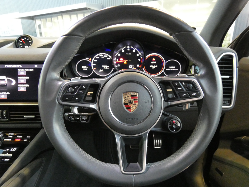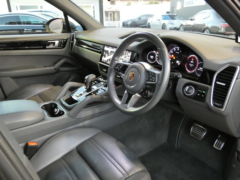 安心の右ハンドル、正規ディーラー車!! 取説・記録簿付 もちろん事故歴ありません!! 人気オプションスポーツクロノパッケージ付き!! 希少な外装色クォーツァイトグレーメタリックにマトリックスLEDヘッドライト&RSスパイダーデザイン純正21インチAWが装備され迫力あるエクステリアを演出!! SUV特有の使用感はとても少なく心地良い禁煙の室内はおしゃれなグレーレザーインテリアに快適装備のシートヒーター&4ゾーンクライメイトコントロール&14WAYメモリーパワーシート&BOSEサウンドサラウンドシステム&ソフトクローズドア等豪華装備満載!! 高解像度12.3インチタッチスクリーンを採用し、より一層使い勝手の良くなったPCMナビ(ポルシェコミュニケーションマネジメントシステム)を搭載しアップルカープレイ対応!! 便利なコンフォートアクセスにオートマチックテールゲート、運転操作をサポートするサラウンドビュー付パークアシストシステム、ACC(アダプティブクルーズコントロール)装備!! 440馬力を発揮するV6ツインターボエンジンと8速ATが相まってストレスの無いドライビングを可能とします!! カイエンSをお探しの方は是非お急ぎ下さい!!