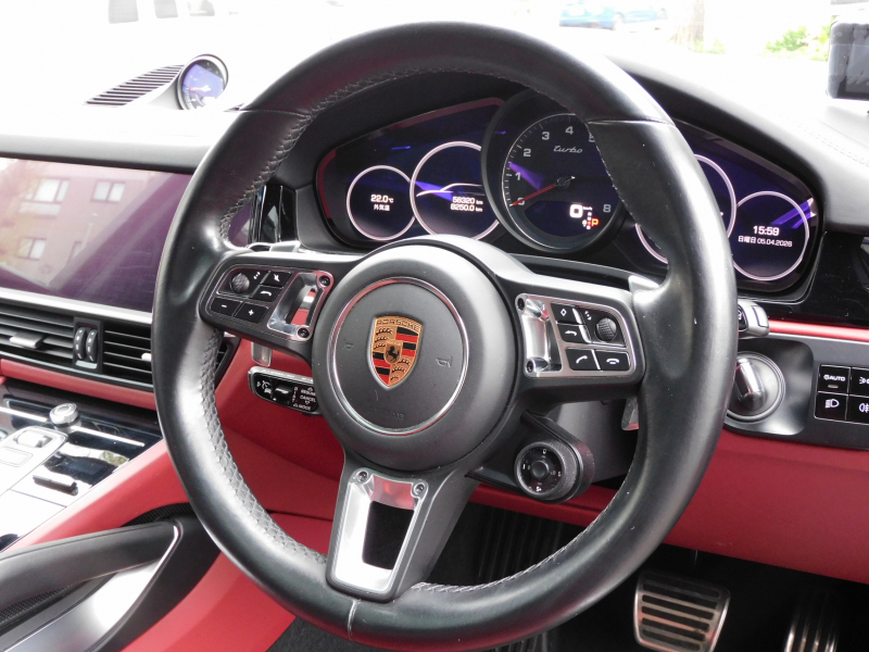 フル装備 ABS PSM PTM SRSエアバッグ PASM付アダプティブエアサスペンション 21インチRSスパイダーデザインホイール エクステリアパッケージ ボディ同色ホイールアーチエクステンション PSCB(ポルシェサーフェスコーテッドブレーキ) パノラミックルーフシステム アルカンターラルーフライニング ブラック/ボルドーレッドツートンレザーインテリア ボルドーレッドレザーシート 18Way電動アダプティブスポーツシート(メモリー付) シートヒーター(全席)&ベンチレーション ドライバープロフィール記録機能 LEDヘッドライト(PDLS付) LEDフォグランプ LEDテールライト 12.3インチPCMタッチパネルナビ(SD・USB・AUX・Apple CarPlay・ETC) BOSEサウンドシステム サラウンドビュー付パークアシストシステム ポルシェアクティブセーフ ACC(アダプティブクルーズコントロール) LCA(レーンチェンジアシスト) LDW(レーンディパーチャーウォーニング) ソフトクローズドア オートマチックテールゲート(バーチャルペダル付) 電動格納ミラー スポーツクロノパッケージ【クロノ・スポーツプラス(モードスイッチ付)】 電動チルト&テレスコピック GTスポーツステアリング(ヒーター付) V型8気筒ツインターボエンジン 8速AT Start/Stopシステム ティプトロニック&パドルシフト SPORTモード イモビライザーエレクトロニックキー エントリー&ドライブシステム コンフォートアクセス レインセンサー 右ハンドル ポルシェ正規ディーラー車