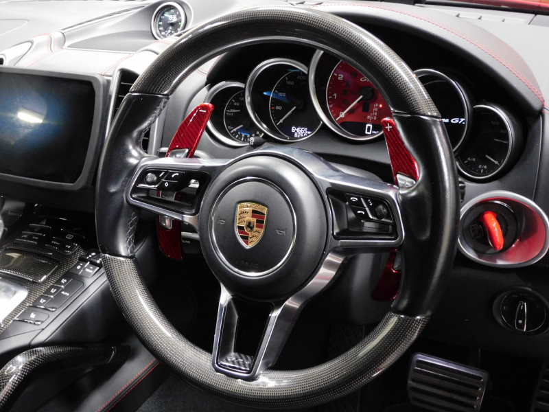 安心の右ハンドル、正規ディーラー車!! 取説・記録簿付 もちろん事故歴ありません!! 鮮やかなスペシャルボディーカラーカーマインレッド!! GTS専用エクステリアに21インチカイエンスポーツクラシックホイール&レッドペイントブレーキキャリパー、LEDヘッドライト(PDLSプラス付)が迫力有るエクステリアを演出!! SUV特有の使用感はとても少なく心地よい禁煙の室内はGTS専用インテリアにカーボンインテリアパッケージ&カーボンスポーツステアリング&カーボングラブハンドルの組み合わせに快適なシートヒーター付!! 使い勝手の良い社外9インチフローティングナビ&フリップダウンモニターにBOSEサウンド搭載!! 使い勝手の良いエントリー&ドライブシステム、オートマチックテールゲート、運転操作をサポートするリアビューカメラ付パークアシストシステム、クルーズコントロールも装備!! 鮮やかなガーネッドレッドカラーメーターパネルやドライビングプレジャーを掻き立てるスポーツクロノパッケージ&後期型より採用された3.6リッターV6ツインターボエンジンにスポーツエグゾースト&PASM付エアサスペンションが装備され走りの歓びをご堪能できます!! 安心の正規ディーラー車、958後期型GTSをお探しの方は是非お急ぎ下さい!!