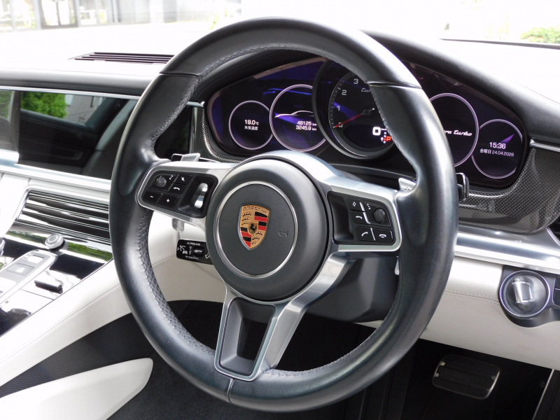 フル装備 ABS PSM SRSエアバッグ PASMアダプティブエアサスペンション 可変バルブ付マフラー Turbo専用エクステリア 20インチパナメーラデザインホイール レッドペイントブレーキキャリパー カーボンインテリアパッケージ ブラック/クレヨンツートンレザーインテリア シートヒーター 14Wayメモリー付パワーシート LEDヘッドライト(PDLS付) LEDテール PCMナビ(ジュークボックス・SD・USB・AUX・Apple Car Play・ETC) 純正CD/DVDチェンジャー BOSEサウンドシステム リアビューカメラ付パークアシスト ACC(アダプティブクルーズコントロール) LKA(レーンキープアシスト) LCA(レーンチェンジアシスト) オートマチックテールゲート(バーチャルペダル付) 電動格納ミラー 電動チルト&テレスコピック マルチファンクション付本革巻スポーツステアリング V型8気筒ツインターボエンジン 8速PDK Start/Stopシステム パドルシフト イモビライザーエレクトロニックキー コンフォートアクセス レインセンサー 右ハンドル ポルシェ正規ディーラー車