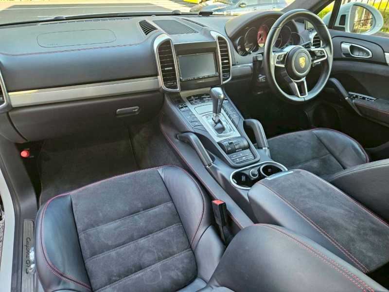 右ハンドル、安心の正規ディーラー車!! 取説・記録簿付 もちろん事故歴ありません!! 綺麗な外装色キャララホワイトメタリック!! GTS専用エクステリアに20インチRSスパイダーデザインホイール&レッドペイントブレーキキャリパーが迫力有るエクステリアを演出!! SUV特有の使用感はとても少なく禁煙の室内は専用アルカンターラハーフレザースポーツシート(GTSロコ刺繍入り)にステッチが施され、お洒落なアルカンターラルーフライニングとレッドメーターパネルの組み合わせ、さらには人気オプションのパノラミックルーフが装備!! 快適なシートヒーターや使い勝手の良い便利なオートマチックテールゲート、純正SDナビ・CD・DVD・地デジ・バックカメラ・ETC付!! 運転操作をサポートしてくれるクルーズコントロールや、レーンチェンジアシストが装備!! 後期型より採用された3.6リッターV6ツインターボエンジンにスポーツエグゾーストシステム&PASMが相まってダイナミックな走りの歓びをご堪能できます!! 安心の正規ディーラー車、958後期型GTSをお探しの方は是非お急ぎ下さい!!