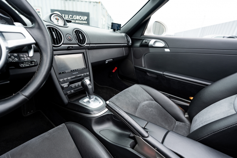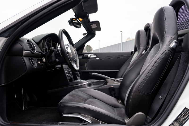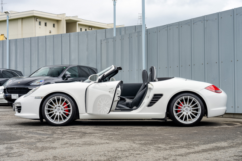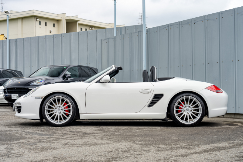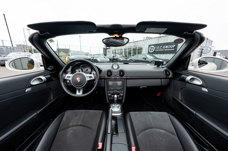 ポルシェ ボクスター(Type987) S スポーツクロノPKG 後期モデル ブラックハーフレザーシート シートヒーター ブラックソフトトップ スポーツデザインステア ダイナミックコーナリングライト クルコン オートエアコン 19インチAW ダウンサス 2年保証