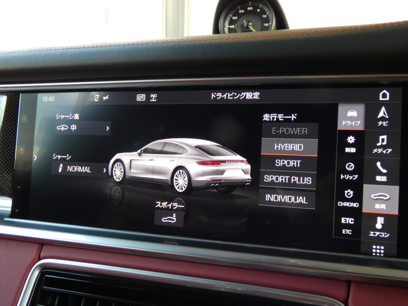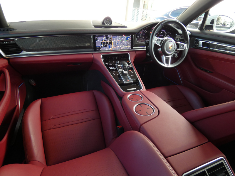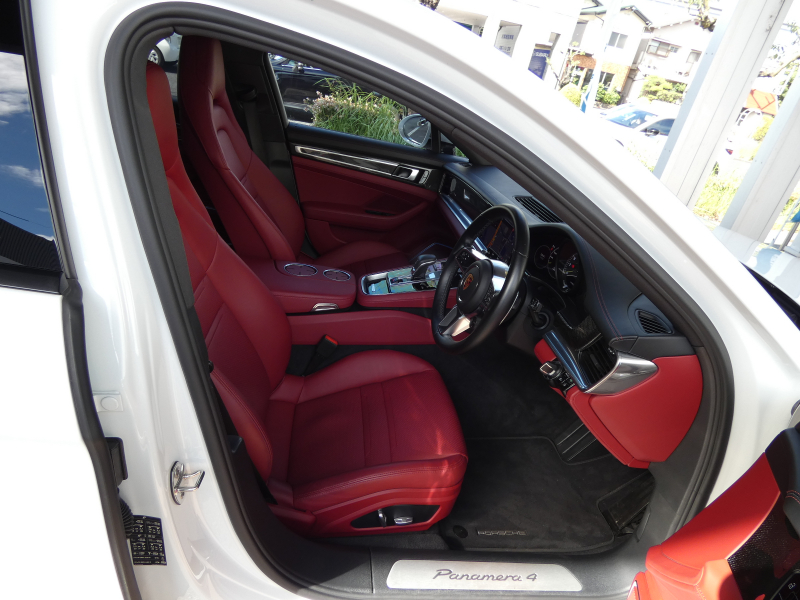 ポルシェ パナメーラ 4 E-Hybrid スポーツクロノPKG 赤革 エントリーD 前後シートヒーター PCMナビ 全周カメラ AppleCarPlay ACC LCA LKA マトリクスLEDヘッドライト 8WAY PASMエアサス 専用キャリパー アンビエントライト 純正21インチAW 禁煙 正規D車