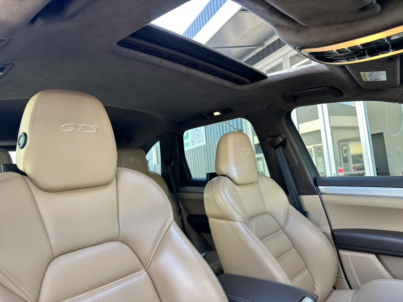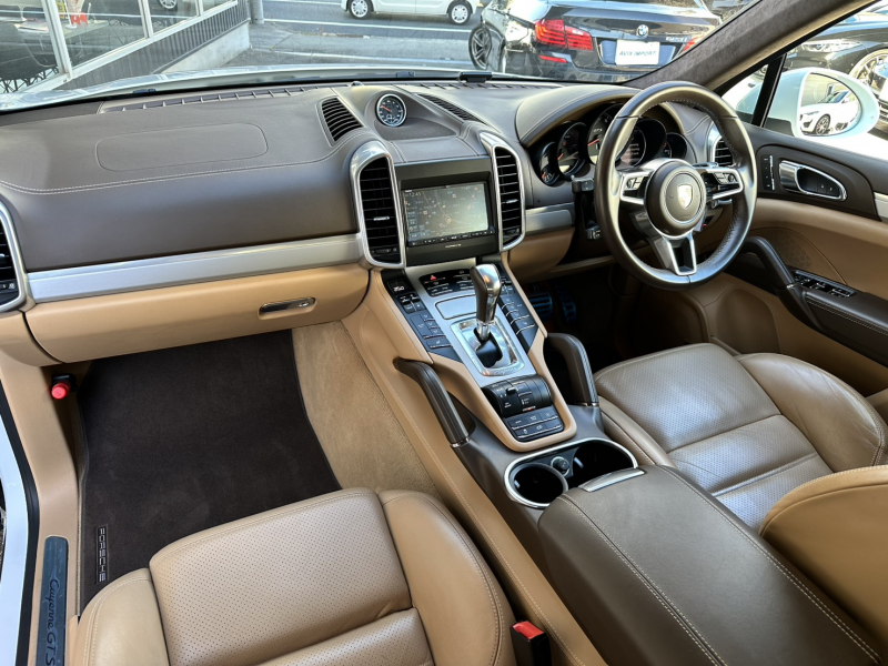 ポルシェ カイエン GTS V6ツインターボ 後期型 ベージュ革 スポーツクロノPKG スポーツエグゾースト SR LEDヘッドライト クルコン 18WAY シートヒーター 純正ナビ 地デジ Bカメラ PTVプラス 電動Rゲート 911ターボデザイン21AW 赤キャリパー リアエンターテイメント 禁煙 右H 正規D車