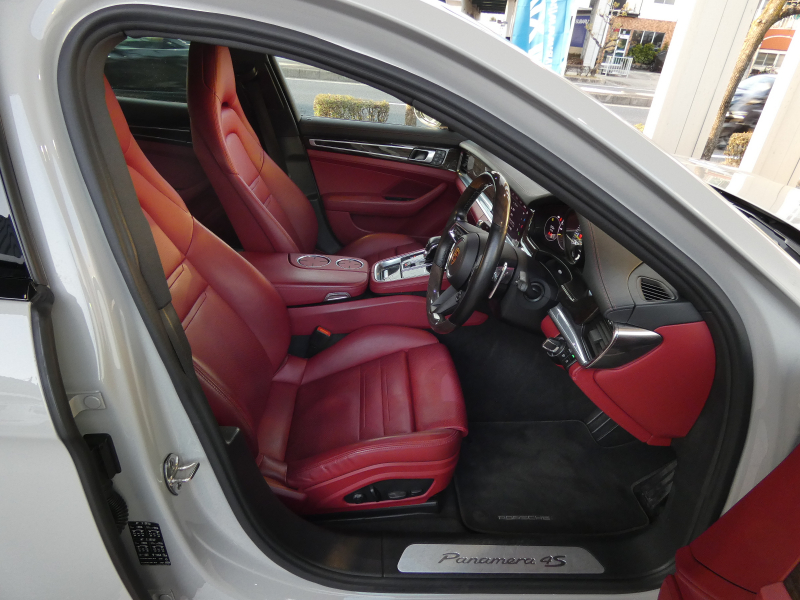 ポルシェ パナメーラ 4S E-Hybrid スポーツクロノPKG スポーツデザインPKG 赤革 エントリーD シートヒーター PCMナビ全周カメラ ACC LCA LKA マトリックスLED(PDLS+) 14WAY PASMエアサス ステアリングヒーター BOSE リアアクスルステアリング 専用キャリパー 純正21AW 禁煙 1オナ 正規D車