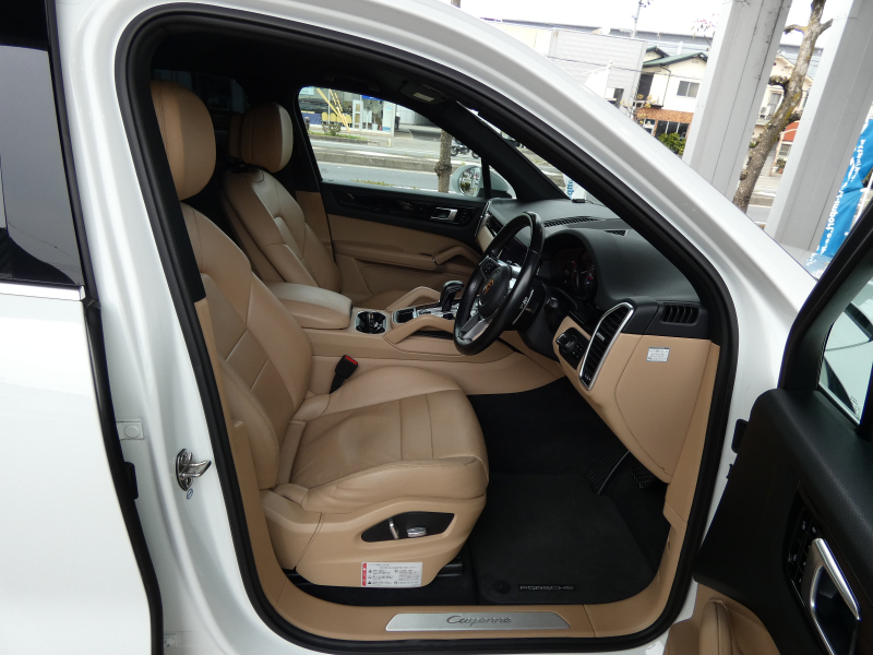 安心の右ハンドル、正規ディーラー車!! 取説・記録簿付 もちろん事故歴ありません!! 綺麗な外装色ホワイトにLEDヘッドライト&純正20インチアルミホイールが装備され迫力あるエクステリアを演出!! SUV特有の使用感はとても少なく心地良い禁煙の室内はお洒落なベージュレザーインテリア&快適なシートヒーター&ALPINEヘッドレストツインモニター付き!! 高解像度12.3インチタッチスクリーンを採用し、より一層使い勝手の良くなったPCMナビ(ポルシェコミュニケーションマネジメントシステム)&社外TV付き!! 運転操作をサポートするサラウンドビュー付パークアシストシステム、ACC(アダプティブクルーズコントロール)、LCA(レーンチェンジアシスト)が装備!! 340馬力を発揮するV6ターボエンジンと8速ATが相まってストレスの無いドライビングを可能とします!! カイエンをお探しの方は是非お急ぎ下さい!!