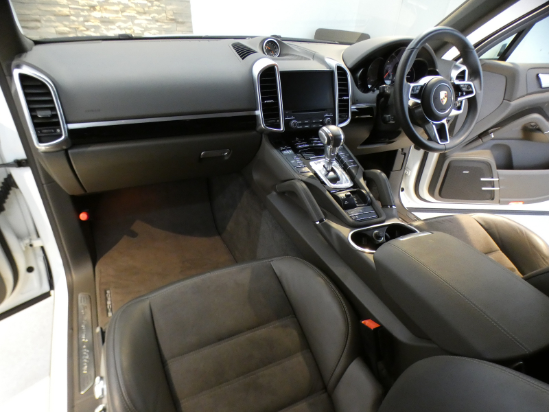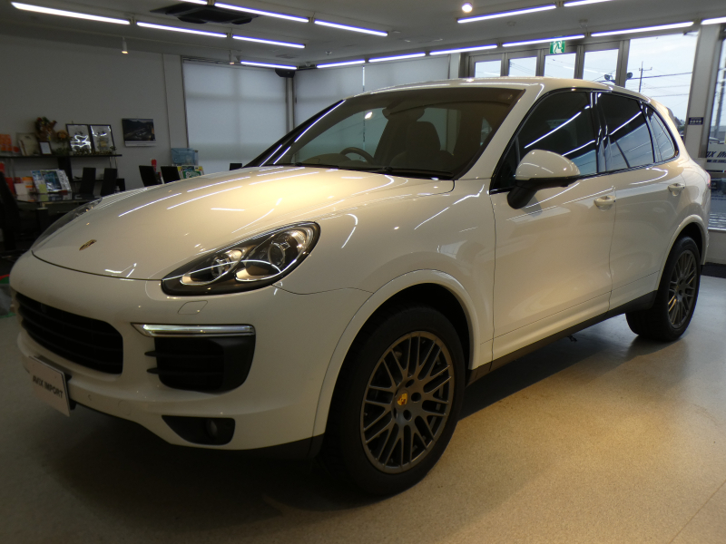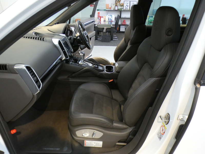 洗練された後期最終型!! 綺麗な外装色ピュアホワイト!! 安心の右ハンドル&正規ディーラー車!! 取説・記録簿付 もちろん事故歴ありません SUV特有の使用感は少なく心地よい禁煙の室内は高級感漂うブラウンハーフレザーインテリア&クレストエンボス加工ヘッドレストに快適な全席シートヒーターが装備!! 便利なクルーズコントロール&バイキセノンヘッドライト(PDLS )&レーンチェンジアシスト付き!! 純正PCMナビ・地デジ・サラウンドビューカメラ・パークアシストシステム・ETC・BOSEサウンドシステム・ポルシェエントリー&ドライブ・純正20インチRSスパイダーデザインホイール等豪華装備満載!! 品質・価格共に自信があります!! 958型 カイエン後期型をお探しの方は是非お急ぎ下さい!!