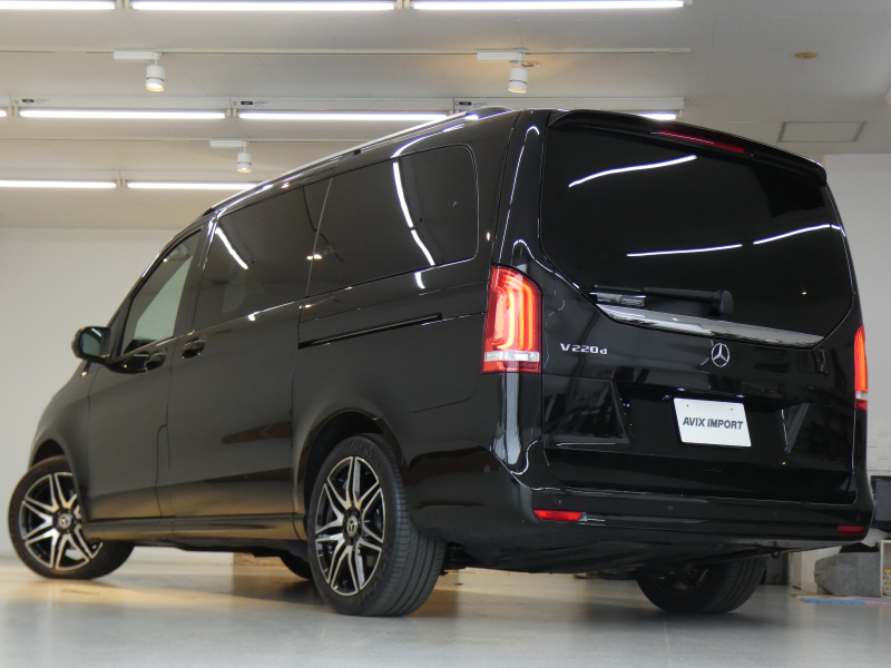 メルセデスベンツ Vクラス V220d AVG ロング AMGラインPKG 後期型 9速AT RSP パノラマSR 黒革 LEDライト 後席フルフラットシート MBUXナビ地デジ360°カメラ 後席フリップダウンモニター デジタルインナーミラー ブルメスターサウンド AMG19AW 禁煙 正規D車