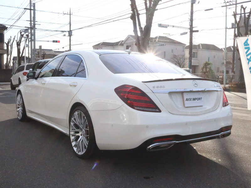 安心の右ハンドル、正規ディーラー車!! 取説・記録簿付 事故歴ありません!! 綺麗な外装色ダイヤモンドホワイトにAMGライン専用エクステリア&Carlsson製21インチアルミホイール、さらにはレッドペイントブレーキキャリパーや社外トランクリッドスポイラーが装着されお洒落なエクステリアを演出!! 使用感はとても少なくロングボディならではの広々とした室内は高級感漂うブラックナッパレザーシート(ドライビングダイナミックシート・リラクゼーション機能付)にパノラミックスライディングルーフや全席シートヒーター&ベンチレーター、4ゾーンエアコン、Burmesterサウンドシステム、さらにはショーファーパッケージならではのリアエンターテイメントシステム、各アームレストヒーター、フットレスト付エグゼクティブリアシート上級サルーンに相応しい同乗者も快適なドライビングをご堪能できます!! 使い勝手の良い純正HDDナビに360°カメラ&ヘッドアップディスプレイや運転操作をサポートするレーダーセーフティパッケージも装備!! 4L V型8気筒ツインターボエンジンと9G-TONICがフラッグシップサルーンに相応しい走行性、環境・燃費性能を実現しています!! 実用性と先進性を兼ね揃えた人気車輌をお届け致します!!
