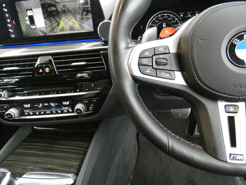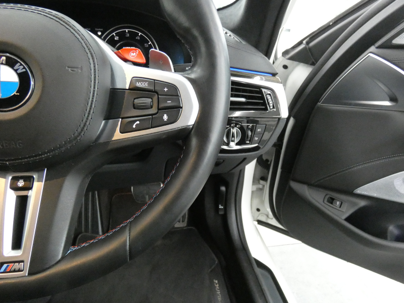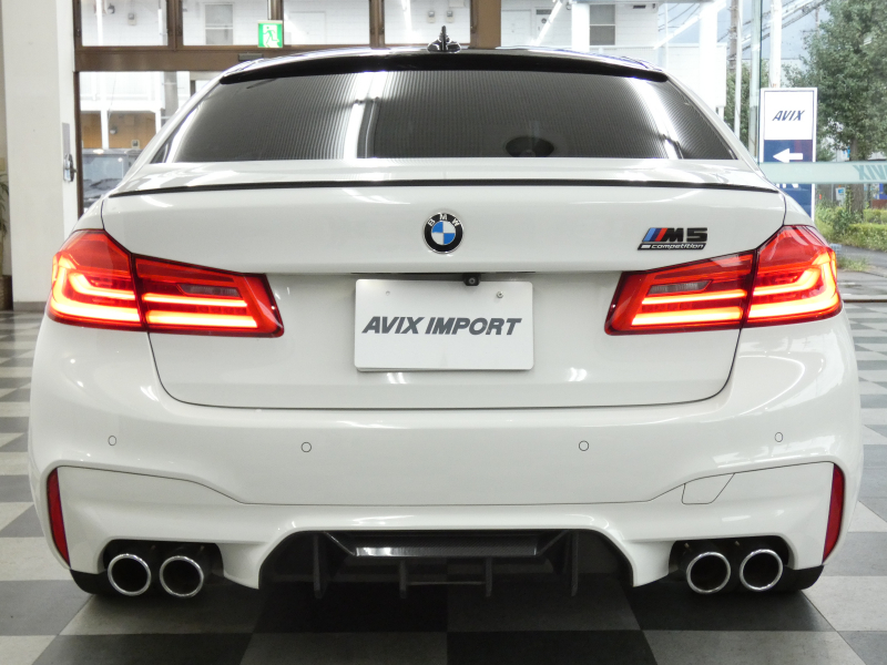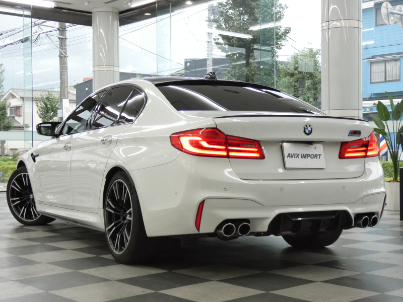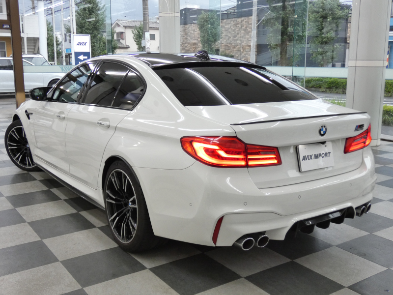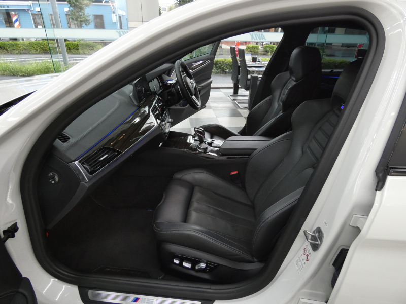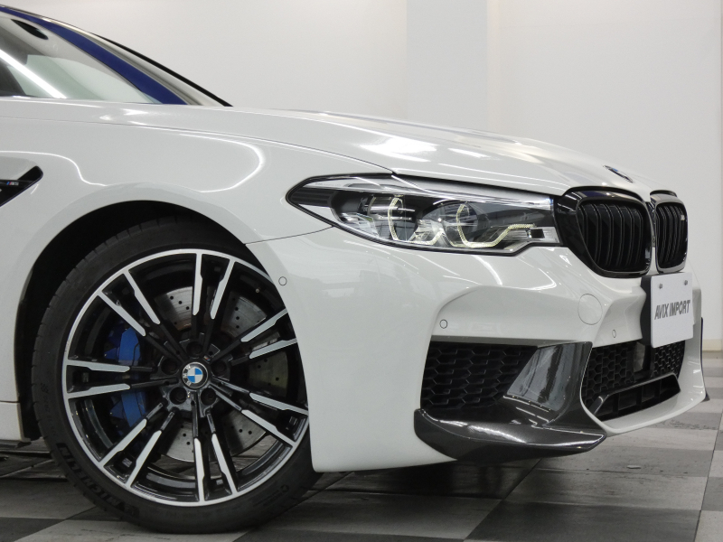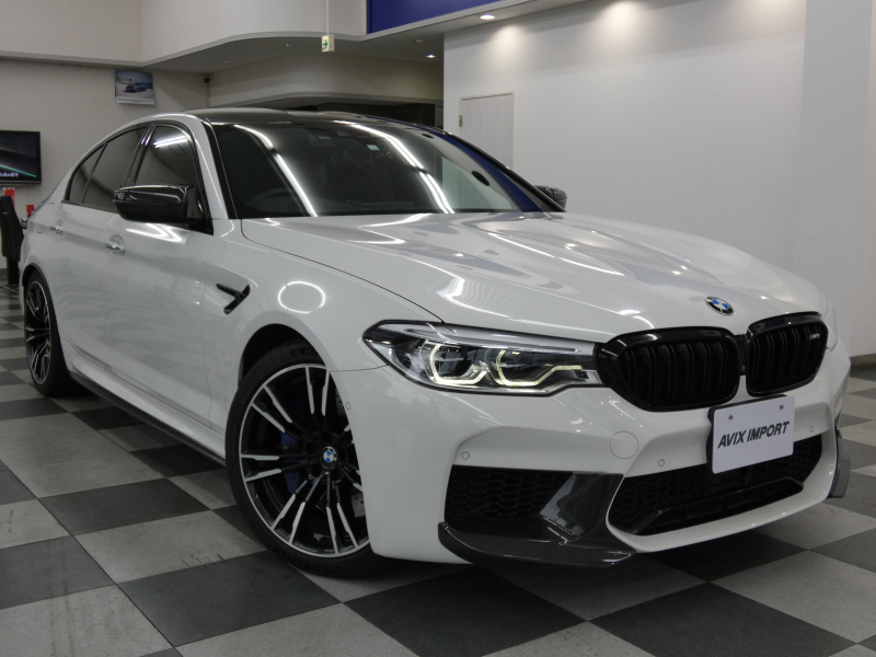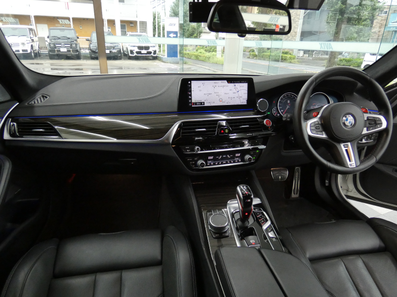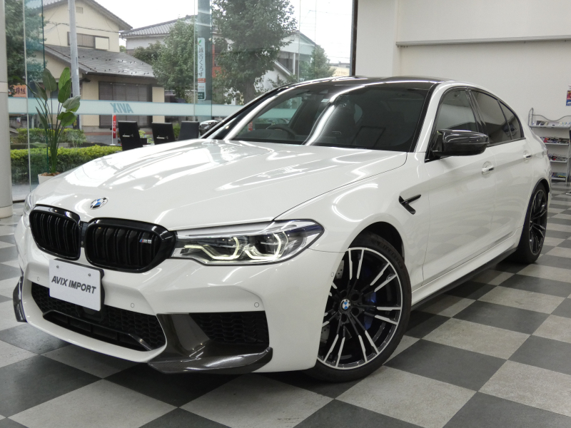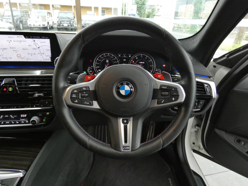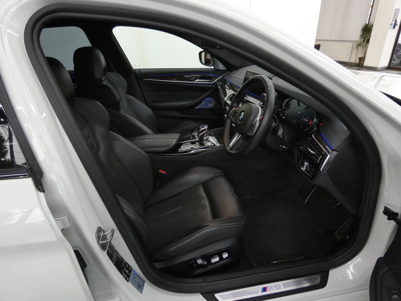 安心の右ハンドル、正規ディーラー車!! 取説・記録簿付 事故歴ありません!! 綺麗な外装色アルピンホワイトにM5専用エクステリア&20インチアルミホイール、社外エアロ(フロント&サイド&リア)、M5ならではのカーボンルーフがお洒落かつ迫力のあるエクステリアを演出!! 使用感はとても少なく室内は清潔感溢れるブラックレザーシートに快適な全席シートヒーターや前席ベンチレーター、4ゾーンエアコンが装備され、さらには前席マッサージシート、ステアリングヒーター、アンビエントエアパッケージが完備されたコンフォートパッケージ付!! 使い勝手の良いジェスチャーコントロール付アイドライブナビに希少なBowers&Wilkinsダイヤモンドサウンドシステムがオプション装備され、便利なソフトクローズドアやコンフォートアクセス&オートマチックトランクリッド、運転操作をサポートするHUD(ヘッドアップディスプレイ)にパーキングアシストプラス&ドライビングアシストプラスとトップグレードならではの豪華装備満載!! 600ps(カタログ値)を発生するDOHC V型8気筒MツインパワーターボエンジンにアクティブMディファレンシャルを採用したM xDrive&8速 M ステップトロニック・トランスミッションDrivelogicが相まって言葉に尽くせないドライビングの醍醐味を堪能することができます!!