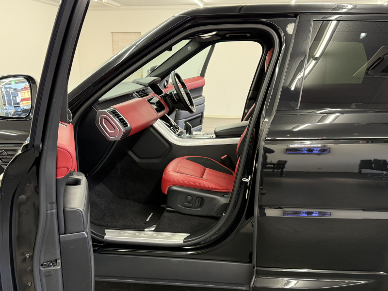 ランドローバー レンジローバーSPORT HSE DYNAMIC 258PS(ディーゼル) 後期型 BLACKエクステリアP パノラミックR 黒/赤セミアニリン革 16Wayパワーシート Sヒーター 3ゾーンAC Touch Pro Duo エンハンスドSS 全周カメラ&PAS クルコン LDW ドライブP 電動Rゲート マトリックスLED Sクローズドア キーレスエントリー 純正21インチAW 禁煙
