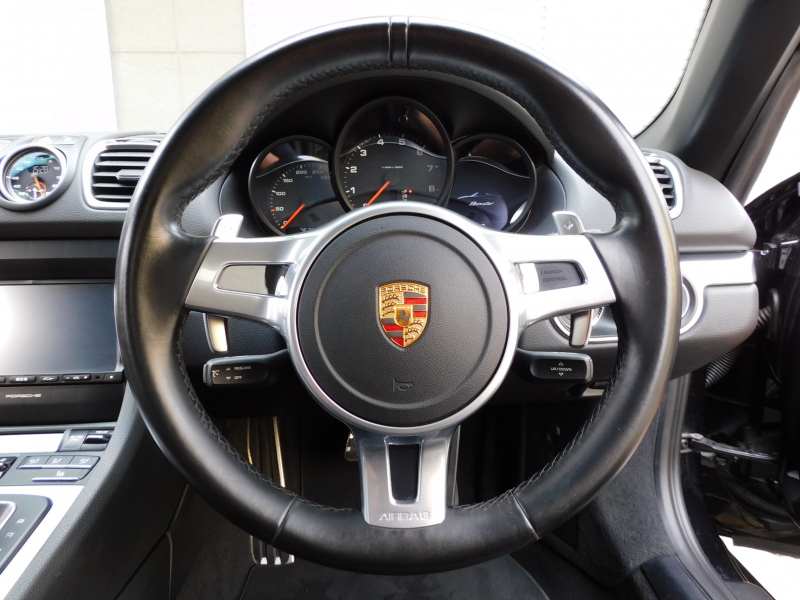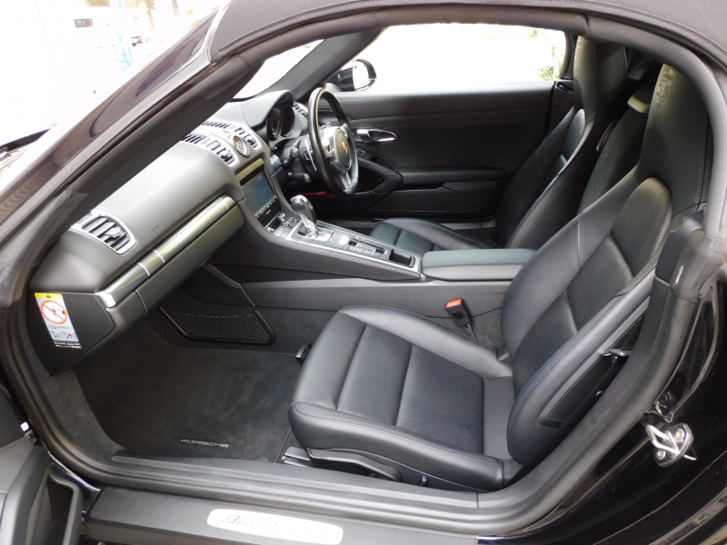 ポルシェ ボクスター (Type981) 2.7 Black Edition 981最終 特別仕様車 右H正規D車 7速PDK 黒幌 スポーツクロノPKG 黒革 シートヒーター 純正ナビ地デジ Bカメラ&PAS クルコン バイキセノンHL(PDLS付) 電格ミラー ボディ同色ロールオーバーバー 純正20インチAW 禁煙