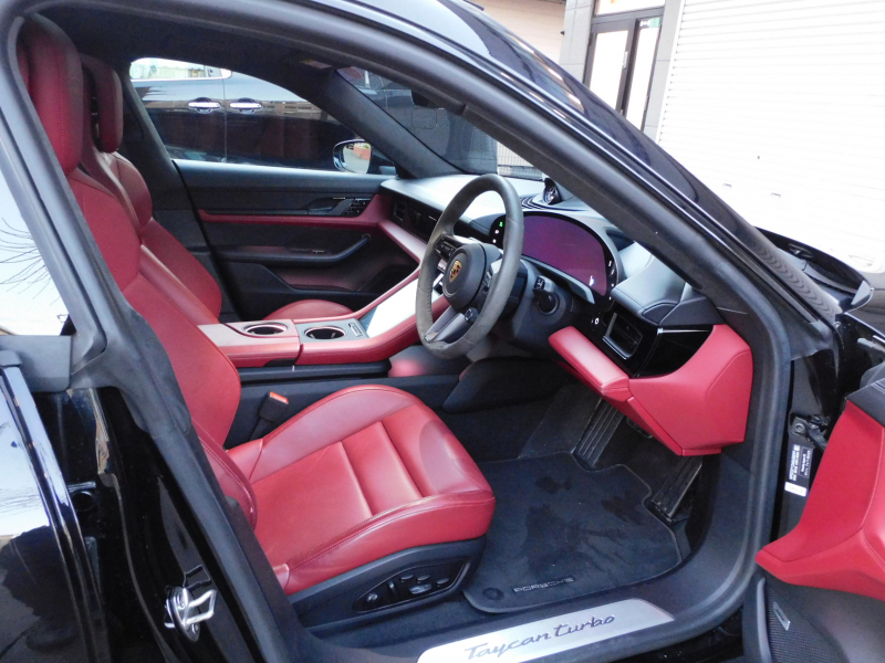 ポルシェ初のEVスポーツカー Taycan!! 使い勝手の良い4WDモデル!! ワンオーナー 安心の正規ディーラー車、運転し易い右ハンドル!! 取説・記録簿付 もちろん事故歴御座いません!! 人気の外装色ブラック!! Turbo専用エクステリア&エクステリアパッケージにPSCB(ポルシェサーフェスコーテッドブレーキ)&純正21インチミッションEデザインホイール(ボディ同色)が装備され迫力あるエクステリアを演出!! 室内は開放感有るパノラマルーフに鮮やかなブラック/ボルドーレッドツートンレザーインテリア&アルカンターラ仕上げが施されたGTスポーツステアリング(カーボンインレイ及びヒーター付)が組み合わされ、4+1シート(5人乗り)、使い勝手の良い18way電動アダプティブスポーツシート(メモリー付)、シートヒーター&ベンチレーション、4ゾーンエアコン付!! 高解像度12.65インチタッチスクリーンを採用したPCMナビ(ポルシェコミュニケーションマネジメントシステム)に使いやすいダイレクトタッチコントロールを備えたセンターコンソールや16.8インチ曲面ディスプレイ&10.9インチパッセンジャーディスプレイ、BOSEサウンドシステム、夜間のインテリアを彩るアンビエントライトが完備!! LEDマトリックスヘッドライト(PDLSプラス付)に運転操作をサポートするアシスタンスシステム(全周カメラ・パークアシストシステム・レーンチェンジアシスト・レーンキープアシスト・アダプティブクルーズコントロール・アクティブレーンキーピング)、パワーステアリングプラス、便利なポルシェエントリー&キーレスドライブやオートマチックテールゲート(フットオープナー機能付)も装備!! ドライビングプレジャーを掻き立てるオプションのスポーツクロノパッケージ(レッドカラークロノ)&エレクトリックスポーツサウンドにローンチコントロールとオーバーブーストモード使用時に最高出力460kW(625ps)を発生するパフォーマンスバッテリープラス&PASM付アダプティブエアサスペンション&4WDシステムが相まってEVならではのスムーズな加速とポルシェならではのスポーティなドライビングをご堪能できます!! Taycanをお探しの方、是非ともお急ぎ下さいませ!!