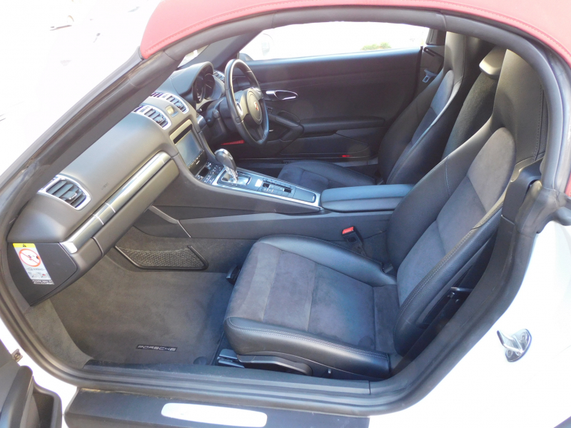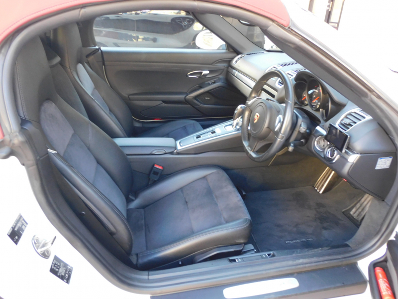 安心の正規ディーラー車!! 安心の右ハンドル&7速PDK搭載車両!! 取説・記録簿付 事故歴ありません!! 綺麗な外装色ホワイト&鮮やかなレッドカラーソフトトップに純正18インチボクスターホイールが装備され迫力あるエクステリアを演出!! 心地よい禁煙の室内はスポーティなブラックハーフレザーシートにシートヒーター&ステアリングヒーター完備!! 純正SDナビ・CD(ミュージックサーバー)・DVD・Bluetooth・地デジ・ETCにBOSEサウンド搭載!! 運転をサポートするバックカメラ&パークアシストシステム(リア)や便利な電動格納ミラー、夜間走行をサポートするバイキセノンヘッドライト(PDLS付)が装備!! アイドリングストップ機能が燃費向上を実現!! 税金面においても経済的で初めての方にもおすすめです!! 981型ボクスタ-をお探しの方は是非お急ぎください!!
