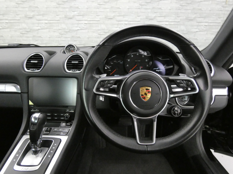 安心の正規ディーラー車!! 運転しやすい右ハンドル!! 7速PDK搭載!! 取説・記録簿付 事故歴ありません!! 人気の外装色ブラックにスポーツデザインパッケージ専用エクステリア&純正オプション20インチカレラスポーツホイール、さらにはLEDヘッドライト(PDLS付)が装備され迫力有るエクステリアを演出!! 心地よい禁煙の室内はスポーティなブラックハーフレザーシートに快適なシートヒーターが完備!! 解像度7インチタッチスクリーンを採用したPCM(ポルシェコミュニケーションマネジメントシステム)に運転操作をサポートするリアビューカメラ&パークアシストシステム(フロント&リア)、便利な電動格納ミラーも完備!! ドライビングプレジャーを掻き立てるスポーツクロノパッケージ&スポーツエグゾーストシステムに2L 水平対向4気筒ターボエンジン&PASMが相まって刺激的なドライビングをお愉しみいただけます!! 718ケイマンをお探しの方は是非お急ぎください!!