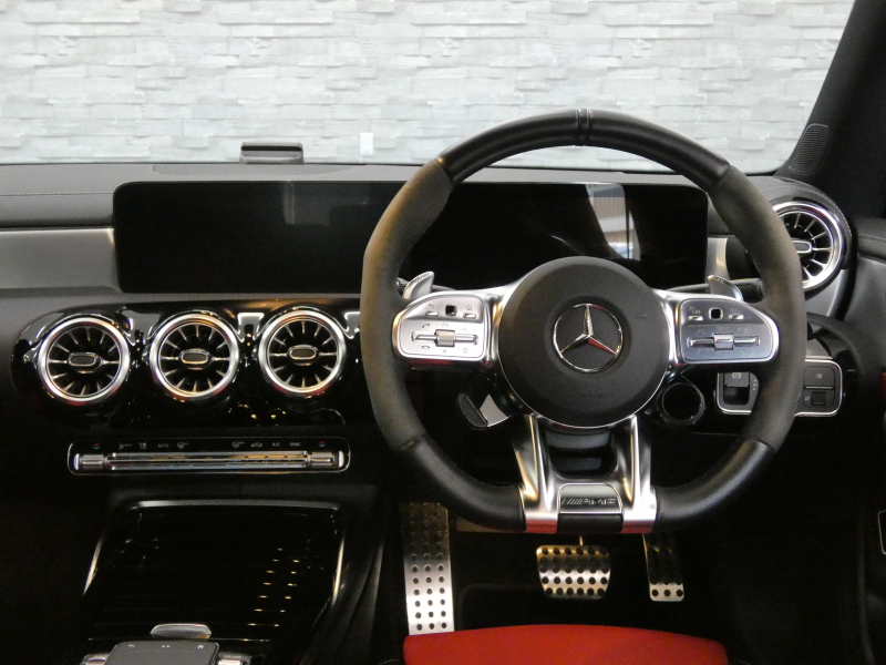 フル装備 ABS ASR BAS ESP SRSエアバッグ 4MATIC AMGサスペンション AMG専用スタリングパッケージ(フロントスポイラー、サイド&リアスカート) 専用18インチアルミホイール AMG強化ブレーキアシステム クラシックレッド/ブラックツートンレザースポーツシート メモリー付パワーシート シートヒーター 電動ランバーサポート 分割可倒式シート トランクスルー機能 アンビエントライト アルミニウムインテリアトリム マルチビームLEDヘッドライト ブランドロゴプロジェクターライト アダプティブハイビームアシストプラス LEDポジショニングライト LEDリアコンビネーションランプ 10.25インチメディアディスプレイ(タッチスクリーン) MBUXインテリアアシスタント ナビゲーションコネクティビティパッケージ・CarPlay・地デジ・Bluetoohオーディオ機能&ハンズフリー機能・ETC アドバンスドサウンドシステム(スピーカー数10) 360°カメラシステム ヘッドアップディスプレイ パークトロニックセンサー アクディブパーキングアシスト トラフィックサインアシスト レーダーセーフティパッケージ【自動再発進機能・降車時警告機能・アクティブステアリングアシスト・アクティブディスタンスアシストディストロニック・アクティブブラインドスポットアシスト】 自動開閉テールゲート 電動格納ミラー マルチファンクション付AMGパフォーマンスステアリング(ナッパレザー/MICROCUT) デジタルコックピットディスプレイ DOHC 直列4気筒ターボエンジン 7速AMGスピードシフトDCT ダイレクトステアリング パドルシフト DYNAMIC SELECT AMGトラックベース ECOスタート/ストップ イモビライザーエレクトロニックキー キーレスゴー レインセンサー 右ハンドル 正規ディーラー車