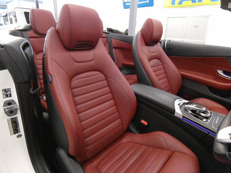 フル装備 ABS BAS ESP SRSエアバッグ アコースティックソフトトップ(ブラックカラー) AIR BODY CONTROLサスペンション スポーツ専用AMGスタイリングパッケージ(フロントスポイラー・サイド&リアスカート) レザーエクスクルーシブ専用19インチアルミホイール(ハイグロスブラックペイント) ブラック/グランベリーレッドインテリア 本革スポーツシート(グランベリーレッド) シートヒーター エアキャップ&エアスカーフ メモリー付パワーシート 電動ランバーサポート アナログ時計 エアバランスパッケージ アンビエントライト(64色) アンスラサイトオークウッドインテリア マルチビームLEDヘッドライト(ウルトラハイビーム付) LEDポジショニングライト&コーナリングライト アダプティブハイビームアシストプラス 10.25インチワイドディスプレイ 純正HDDナビ・地デジ・Bluetoohオーディオ機能・Apple CarPlay&Android Auto・SD・USB・ETC アドバンスドサラウンドシステム パーキングアシストリアビューカメラ パークトロニックセンサー ヘッドアップディスプレイ アクティブパーキングアシスト アテンションアシスト クロスウインドアシスト レーダーセーフティパッケージ【アクディブディスタンスアシストディストロニック(自動発信機能付)・アクティブステアリング・アクティブレーンチェンジアシスト・アクティブエマージェンシーストップアシスト・アクティブブレーキアシスト・PRE-SAFEプラス&サウンド・緊急回避補助システム・渋滞時緊急ブレーキ機能・アクティブブラインドスポットアシスト(降車時警告機能付)・アクティブレーンキーピングアシスト】 電動格納ミラー 電動チルト&テレスコピック マルチファンクション付本革巻AMGスポーツステアリング 12.3インチコックピットディスプレイ ステンレスアクセル&ブレーキペダル ダイナミックセレクト DOHC 直列4気筒ターボ 電子制御7速AT イモビライザー キーレスゴー ECOスタートストップ機能 レインセンサー 右ハンドル 正規ディーラー車