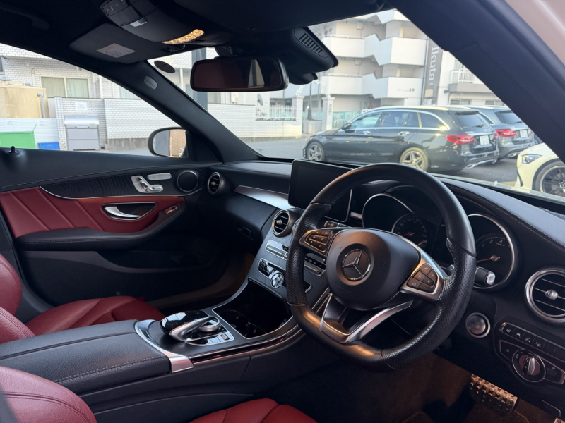 メルセデスベンツ Cクラス C200ステーションワゴン Sport(本革仕様) 正規D車 赤革 シートヒーター エアバランスPKG 純正ナビ地デジ Bカメラ&PTS HUD&レーダーセーフティPKG エアサス 純正18インチAW 禁煙 1オーナー