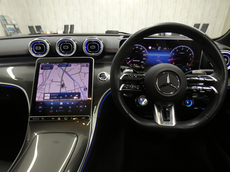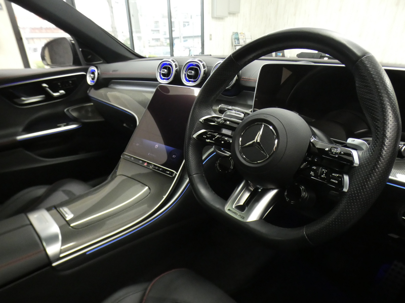 AMG Cクラス C43 4MATIC SW(BSG搭載モデル) 現行型 禁煙 新車保証 パノラマSR 黒革 HUD RSP ディストロ MBUX AppleCarPlay デジタルコックピットD ARナビTV Burmester3D AMGパフォーマンスステアリング 前席M付Pシート&シートヒーター&ベンチレーター 全周C DIGITALライト Pトランク AMG19AW