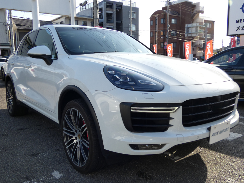 ターボ専用エクステリアを身に纏いより一層美しさを際立たせた専門店ならではの1台!! 綺麗なキャララホワイトメタリック!! 安心の右ハンドル、正規ディーラー車!! 取説・記録簿付 もちろん事故歴ありません!! SUV特有の使用感はとても少なく心地良い禁煙の室内は高級感あふれるブラックレザーインテリア!! 上級グレードならではの18wayメモリー付アダプティブスポーツシート&ACC(アダプティブクルーズコントロール)&LCA(レーンチェンジアシスト)&全席シートヒーター&ベンチレーション&BOSEサウンドシステム&ステアリングヒーター等豪華装備満載!! さらに便利なSDナビ(ミュージックサーバー)・地デジ・360度カメラ・ETC付!! 品質・価格共に自信があります!! 520馬力を発揮するV型8気筒ツインターボエンジン&PASMエアサスペンションが相まって言葉に尽くせない8速ATが相まってドライビングの醍醐味を堪能することができます!! 安心の正規ディーラー車、希少な右ハンドル958後期型Turboをお探しの方は是非お急ぎ下さい!!