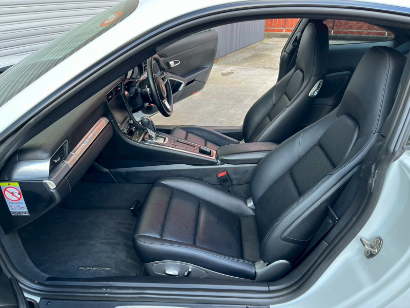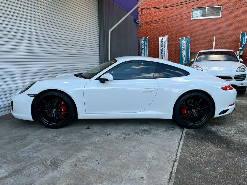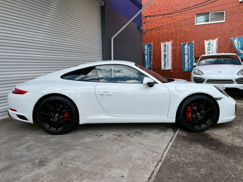 洗練された後期型!! 上級グレードS!! 3L水平対向6気筒ツインターボエンジン搭載!! 安心の正規ディーラー車!! 運転しやすい右ハンドル、7速PDK搭載!! 取説・記録簿付 もちろん事故歴ありません!! 綺麗な外装色ホワイトに20インチカレラSホイール&レッドペイントブレーキキャリパーが迫力有るエクステリアを演出!! 心地よい禁煙の室内は高級感漂うアルカンターラルーフライニングに落ち着いたブラックレザーシート&快適なシートヒーター、お洒落なGTスポーツステアリング付!! 運転操作をサポートするリアビューカメラに前後パーキングアシストシステムも完備!! 後期型より採用された高解像度7インチタッチスクリーンを採用したPCMナビ(ポルシェコミュニケーションマネジメントシステム)に純正地デジチューナーも搭載!! ドライビングプレジャーを掻き立てるスポーツクロノパッケージに出力420ps(カタログ値)を発生する水平対向6気筒ツインターボエンジン&PASM&PTVプラスが相まって卓越したパフォーマンスをご堪能できます!! 後期型911カレラSをお探しの方は是非お急ぎ下さい!!