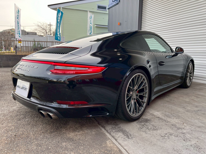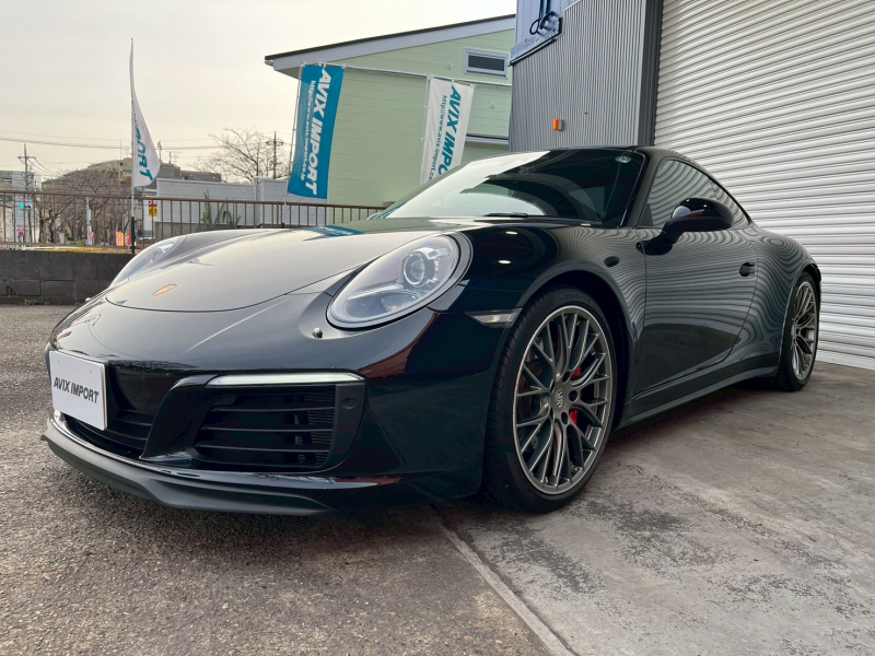 洗練された後期型!! 上級グレードSに希少な4WDモデル!! 3L水平対向6気筒ツインターボエンジン搭載!! 安心の正規ディーラー車!! 運転しやすい右ハンドル、7速PDK搭載!! 取説・記録簿付 もちろん事故歴ありません!! 人気の外装色ブラック!! ワイドリアフェンダーが特徴的な4WDモデルのフォルムにスポーツテールパイプ&20インチRSスパイダーデザインホイール&レッドペイントキャリパーが迫力有るエクステリアを演出!! 室内は高級感漂うアルカンターラルーフライニングに落ち着いたブラックレザシート&快適なシートヒーター、GTスポーツステアリングが装備!! 運転操作をサポートするリアビューカメラ付パークアシストシステム、便利な電動可倒式ドアミラーが完備され、後期型より採用された高解像度7インチタッチスクリーンを採用したPCMナビ(ポルシェコミュニケーションマネジメントシステム)に、BOSEサウンドシステム搭載!! ドライビングプレジャーを掻き立てるスポーツクロノパッケージに出力420ps(カタログ値)を発生する水平対向6気筒ツインターボエンジン&PASM&PTVプラスが相まって卓越したパフォーマンスをご堪能できます!! 後期型911(Type991.2)、希少グレード4Sをお探しの方は是非お急ぎ下さい!!