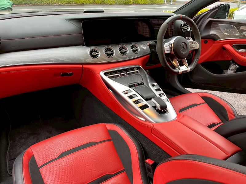 AMG GT 4ドアクーペ GT53 4MATIC+(ISG搭載モデル) AMGダイナミックPKG フルレザー仕様 パノラミックR 赤革 シートヒーター&ベンチレーター MBUX搭載ナビ地デジ Burmesterサウンド 全周カメラ&PTS HUD&レーダーセーフティPKG 専用エアサス&21インチAW 禁煙