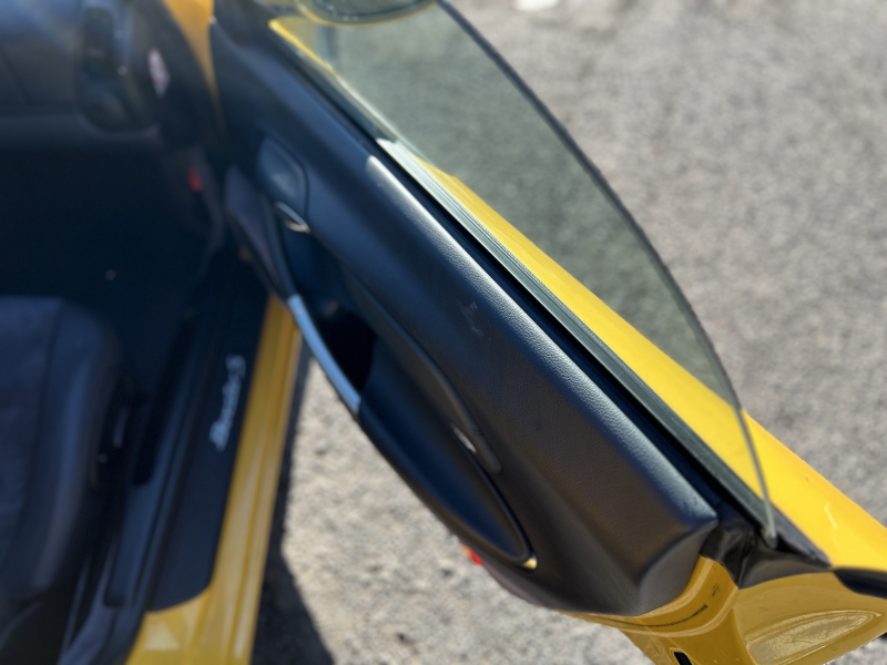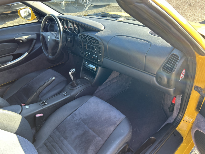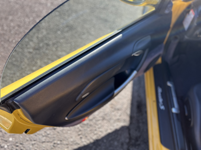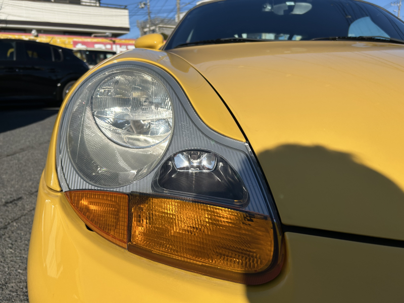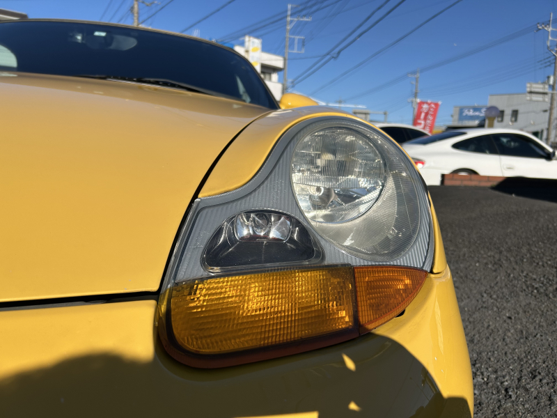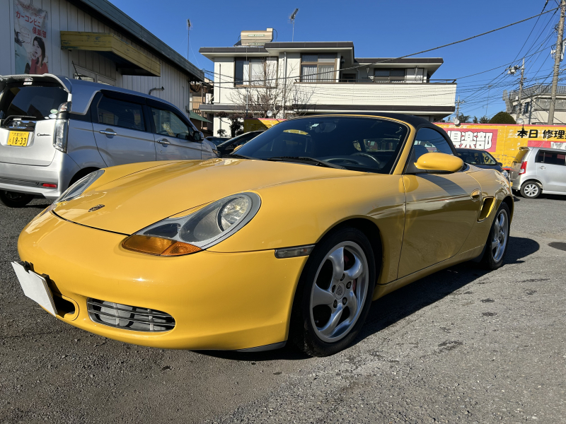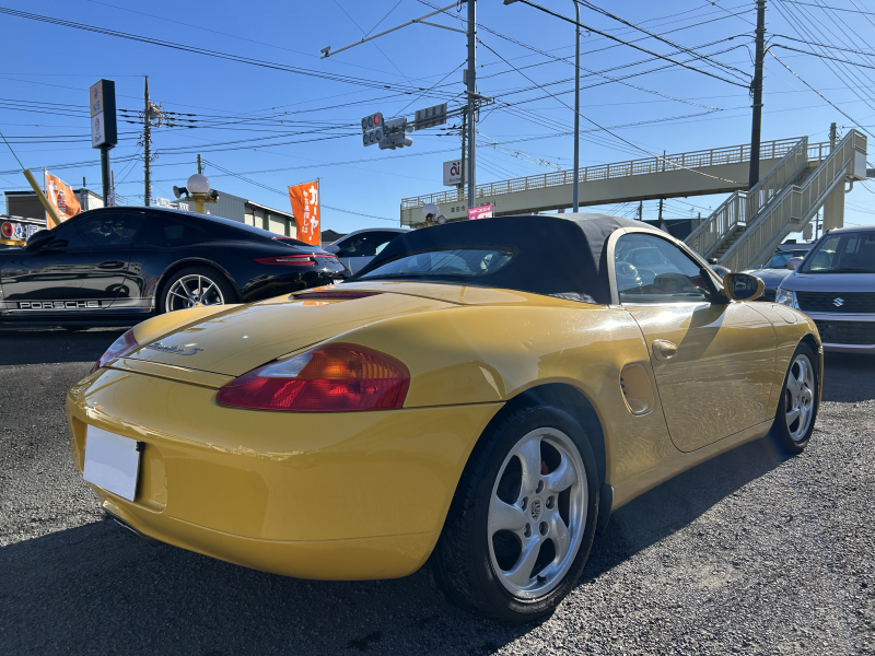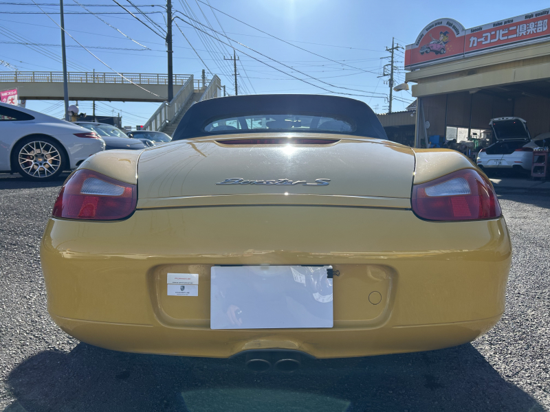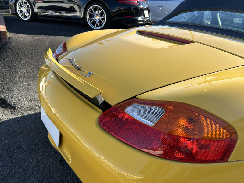 距離の少ない希少なイエロー、ボクスターS入庫しました。左ハンドル、6速マニュアルです。