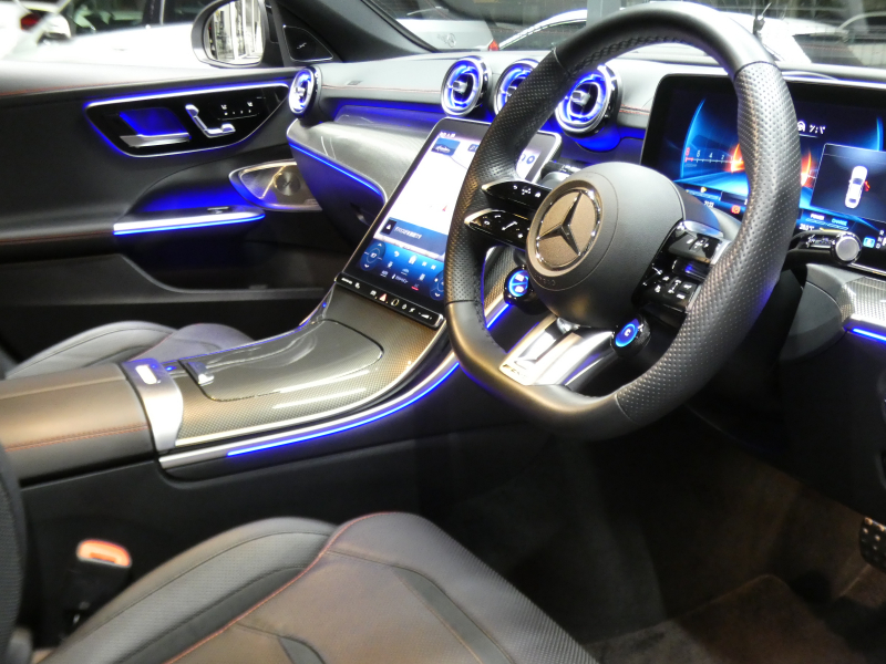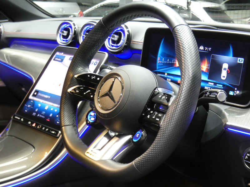 AMG Cクラス C43 4MATIC レーダーセーフティPKG 1オーナー BSG搭載 現行型 AMGエアロ&19AW AMGナイトPKG パフォーマンスサウンド リアアクスルステアリング 黒本革シート/ヒーター/ベンチレーター MBUXナビ 地デジ 360カメラ Burmester HUD DIGITALライト 新車保証継承可能