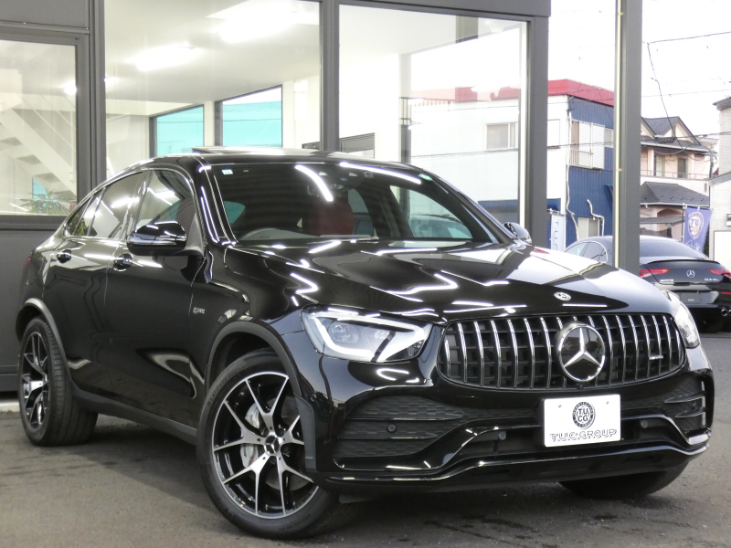 AMG GLCクーペ GLC43 4MATIC クーペ レザーエクスクルーシブ&レーダーセーフティPKG 後期 390ps meコネクト 赤黒革/前後ヒーター サンルーフ MBUXナビ 地デジ 360カメラ Aカープレイ ヘッドアップD Burmester エアバランスPKG 純正ドラレコ LEDヘッドライト AMGエアロ/20インチAW 2年保証付