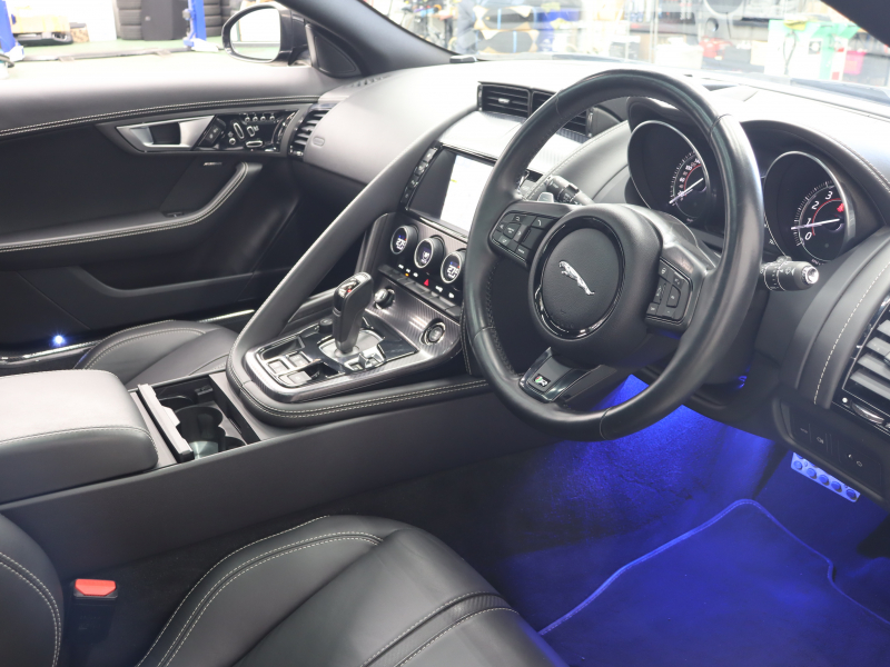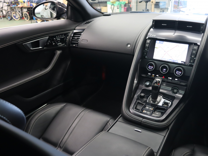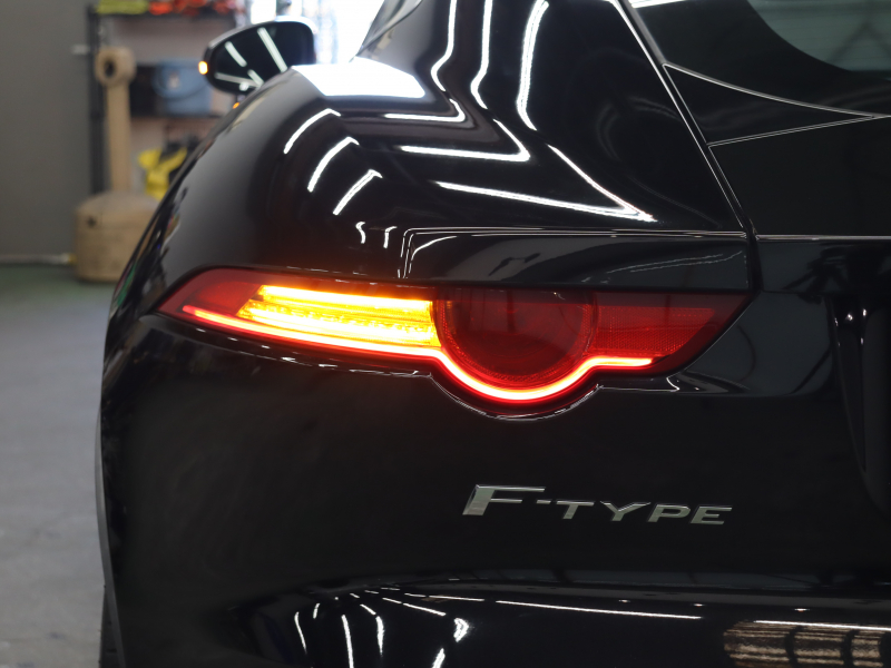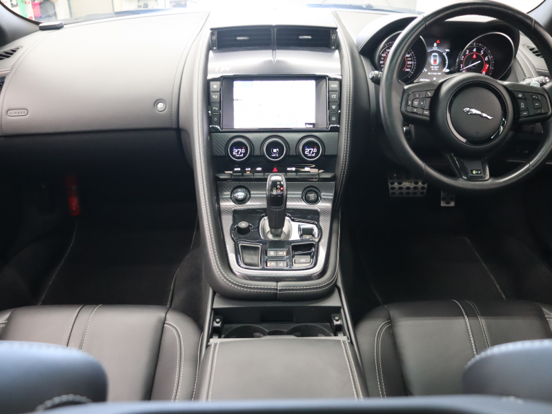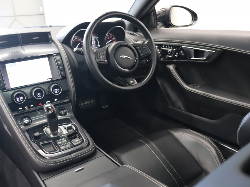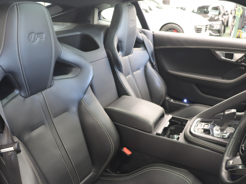 ジャガー Fタイプ Rクーペ スマートキー 黒革 パフォーマンスシート シートヒーター ガラスルーフ 純正ナビ バックカメラ クルコン MERIDIANサウンド 自動Rゲート ステアリングヒーター カーボンセンターコンソール 可変バルブ 可変ウィング パフォーマンスエグゾースト 純正20インチAW 2年保証