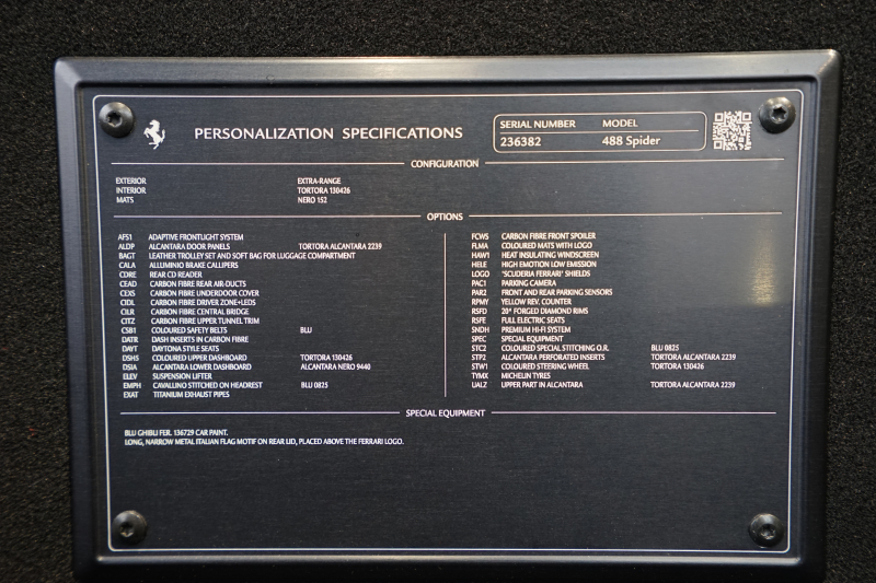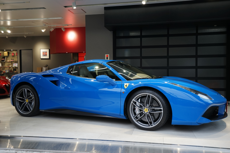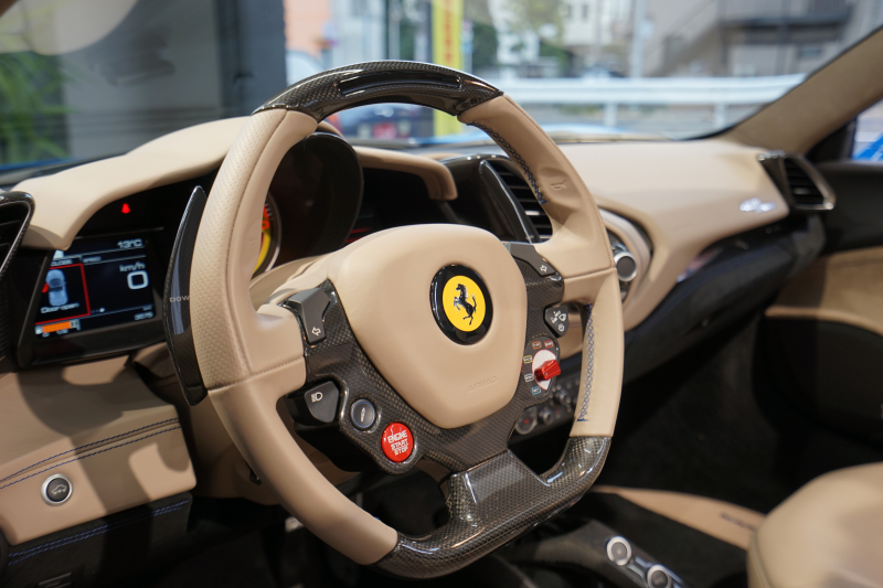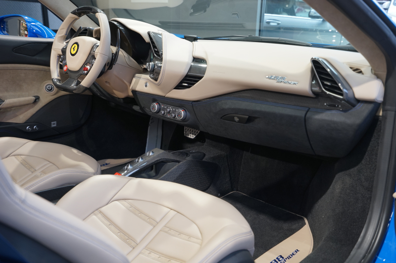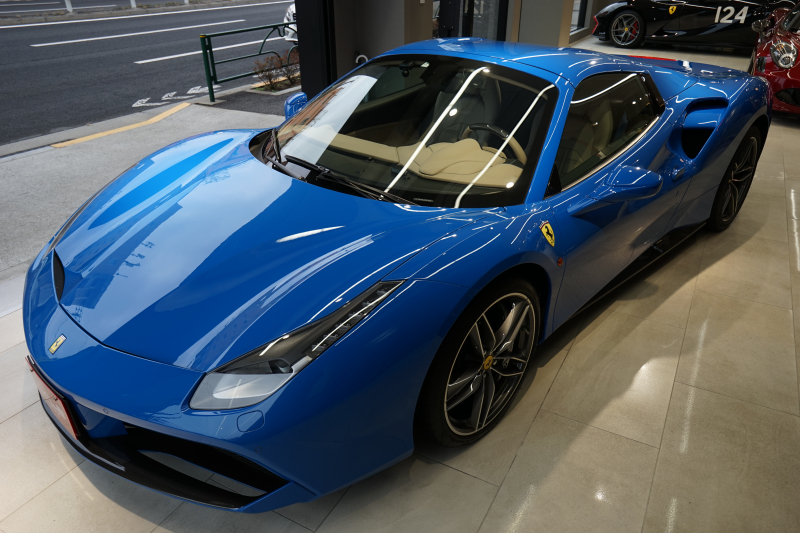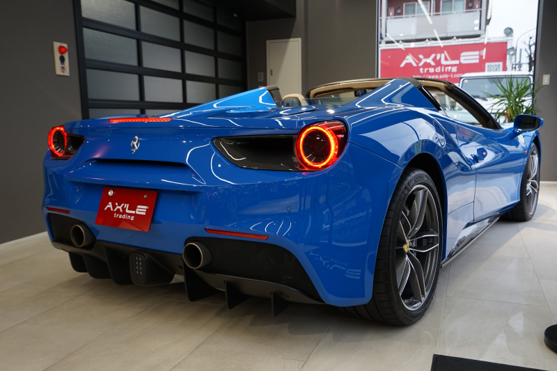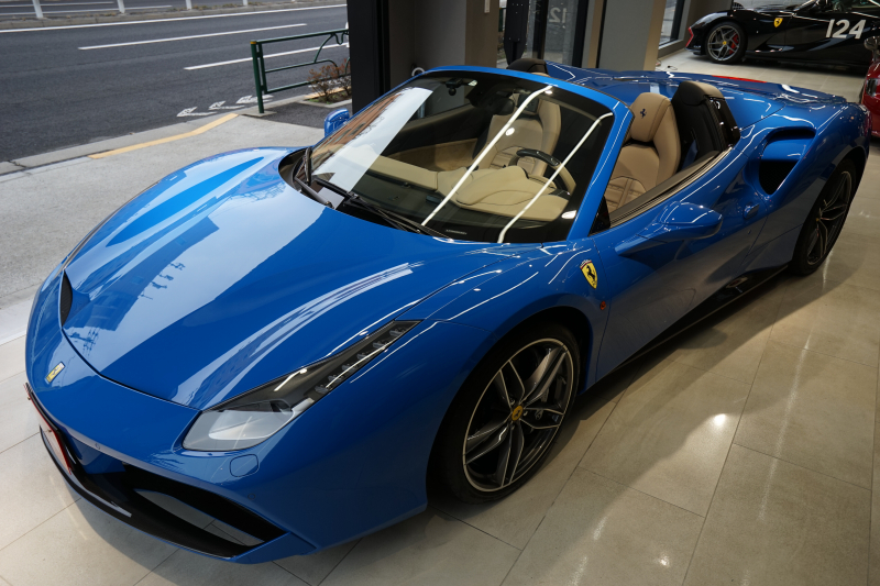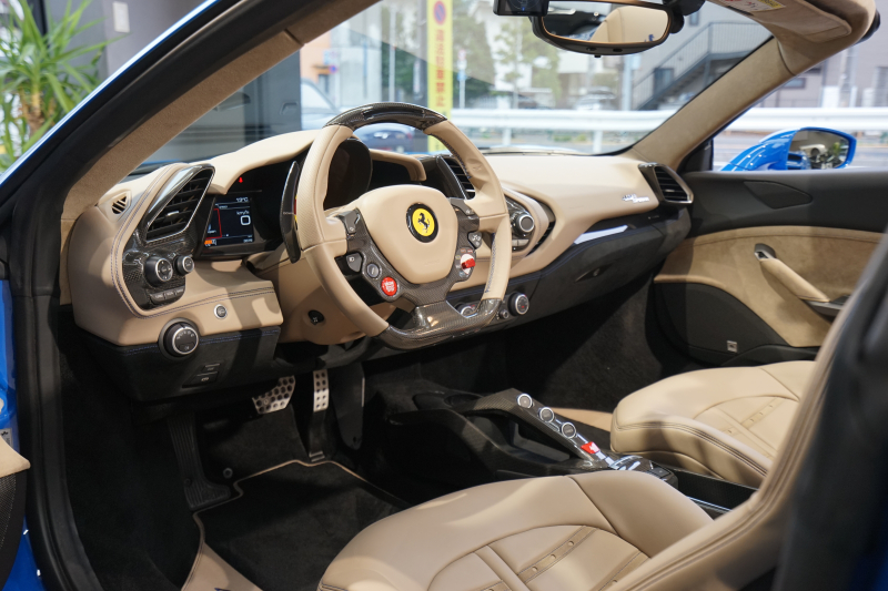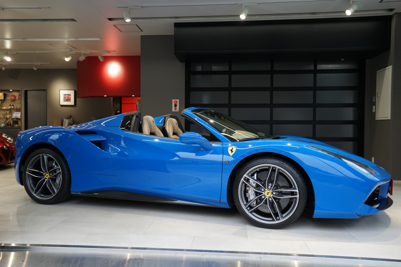 フェラーリ 488スパイダー D車 スペシャルカラーブルーギブリ デイトナシート カーボン多数 内装トルトラアルカンターラ Fリフティング