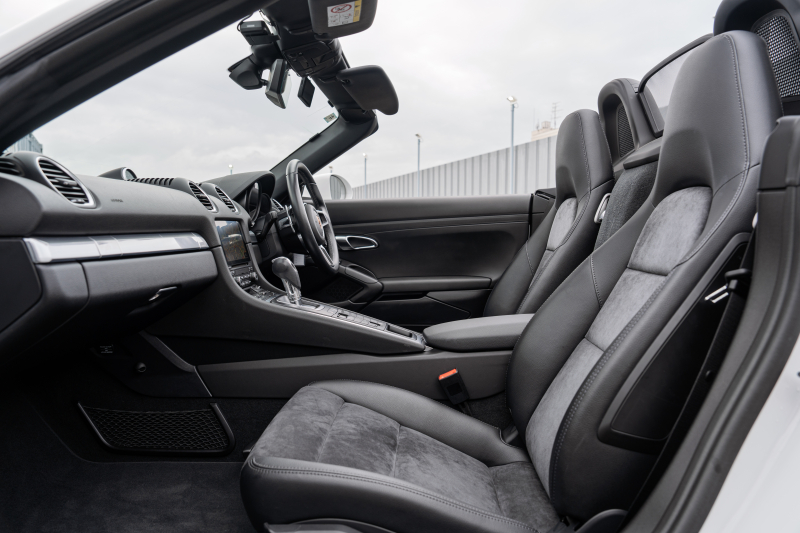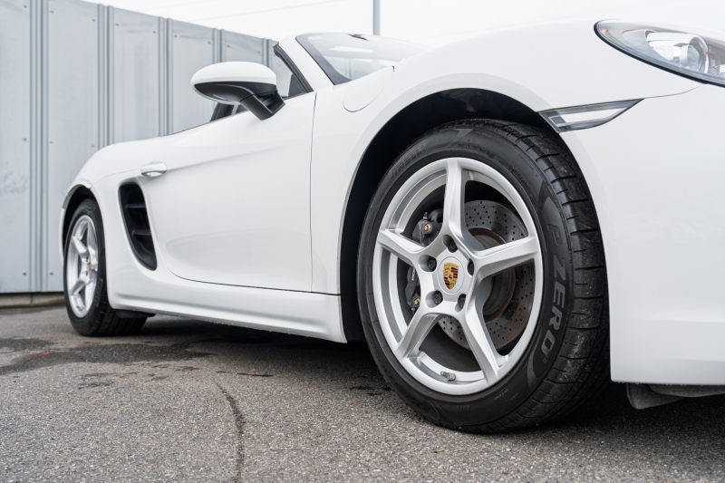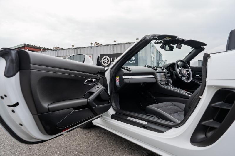 ポルシェ 718 ボクスター ベースグレード スポーツクロノPKG ブラックハーフレザーシート シートヒーター ブラックソフトトップ PCMナビ CarPlay キセノン オートエアコン TPM パークアシスト 電格ミラー ボクスター18インチAW 2年保証