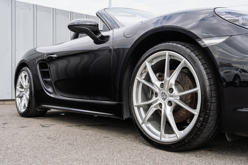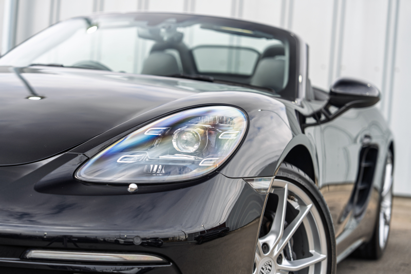 ポルシェ 718 ボクスター ベースグレード スポーツクロノPKG ブラックハーフレザーシート ブラックソフトトップ PCMナビ CarPlay スポーツエグゾースト PDLS+/LEDライト オートエアコン TPM パークアシスト 電格ミラー カレラS20インチAW 2年保証