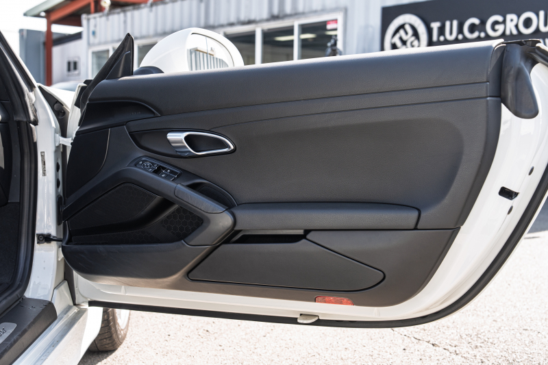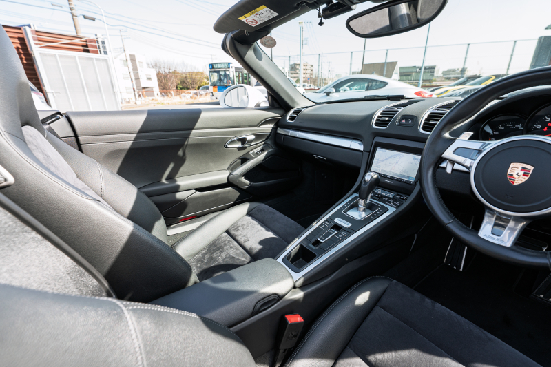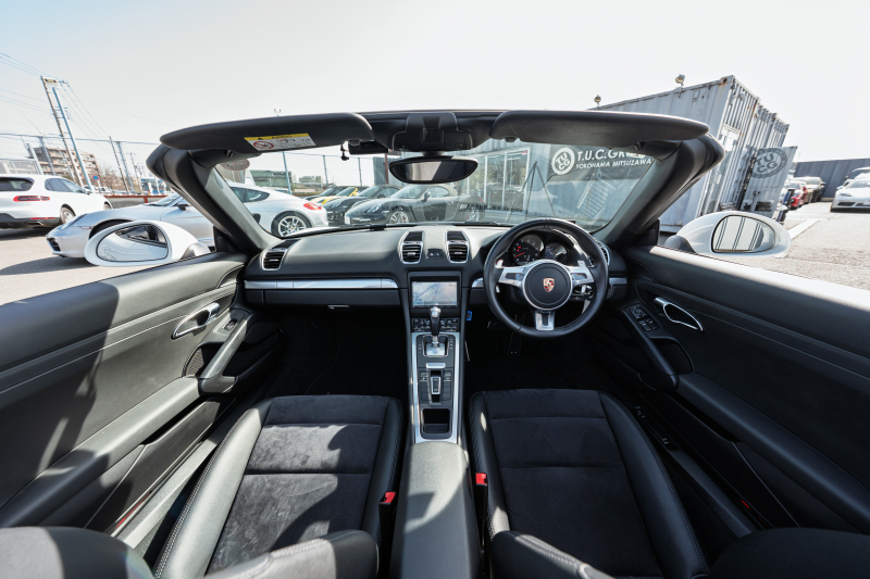 ポルシェ ボクスター(Type981) ベースグレード ブラックハーフレザー ブラックソフトトップ ナビTV スポーツデザインステアリング PDLS オートA/C 電動Dミラー ケイマン18インチAW カラークレストセンターキャップ 2年保証