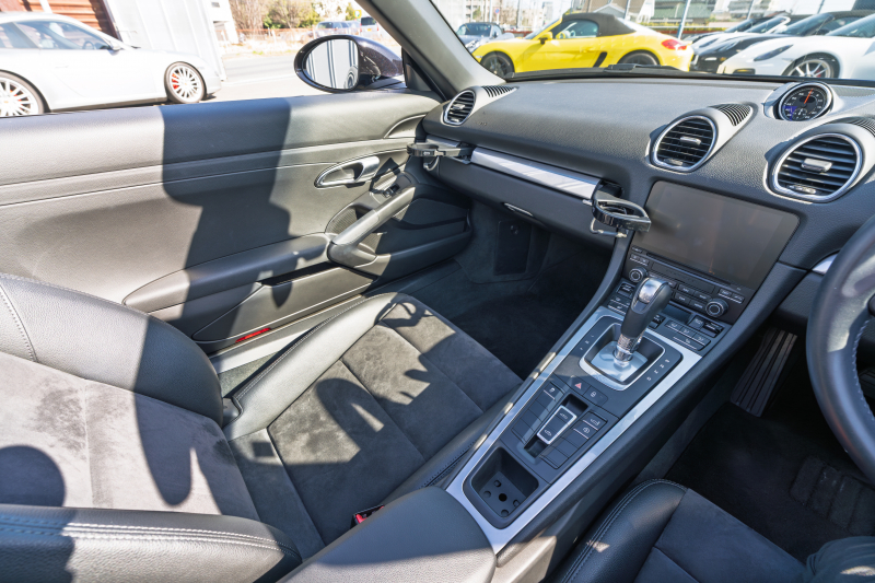 ポルシェ 718 ボクスター ベースグレード スポーツクロノPKG ブラックハーフレザーシート シートヒーター ブラックソフトトップ PCMナビTV CarPlay BOSE GTスポーツステア キセノン オートエアコン TPM パークアシスト 電格ミラー ボクスター18インチAW 2年保証