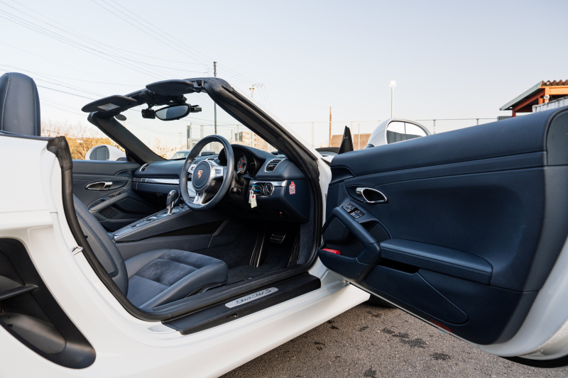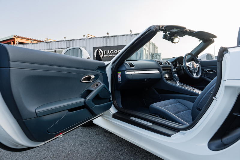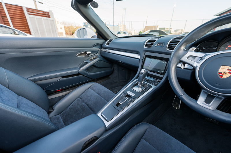 ポルシェ ボクスター(Type981) S ヨッティングブルーハーフレザーシート シートヒーター ブルーソフトトップ カロッツェリアナビ フルセグTV CarPlay Bカメラ PDLS スポーツデザインステアリング 電動Dミラー オートA/C ケイマンS19AW 2年保証