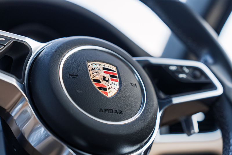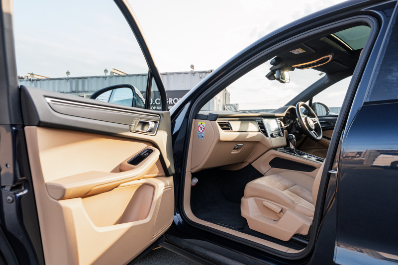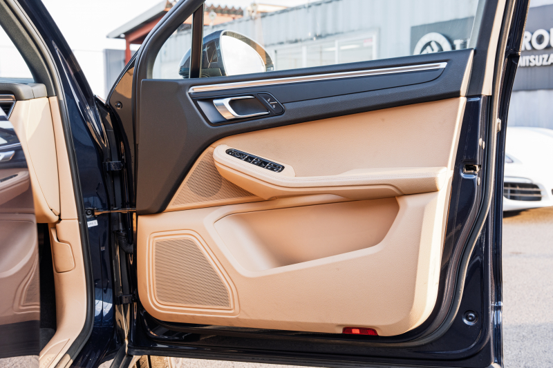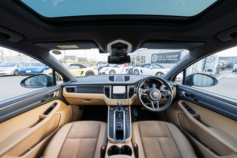ポルシェ マカン ベースグレード ベージュハーフレザーシート パノラマSR PCMナビ エントリーD TPM クルーズコントロール レーンチェンジアシスト LDW カラークレストキャップ マカンS18インチAW 2年保証