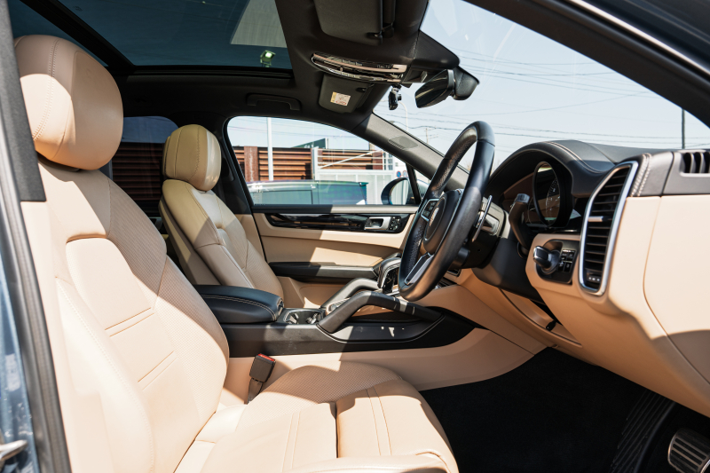 ポルシェ カイエン S スポーツクロノPKG ベージュレザーシート パノラマルーフ PCM CarPlay PASM/エアサス PDLS+ ブルメスター ベンチレーター アンビエントライト ACC RSスパイダー21インチAW 2年保証