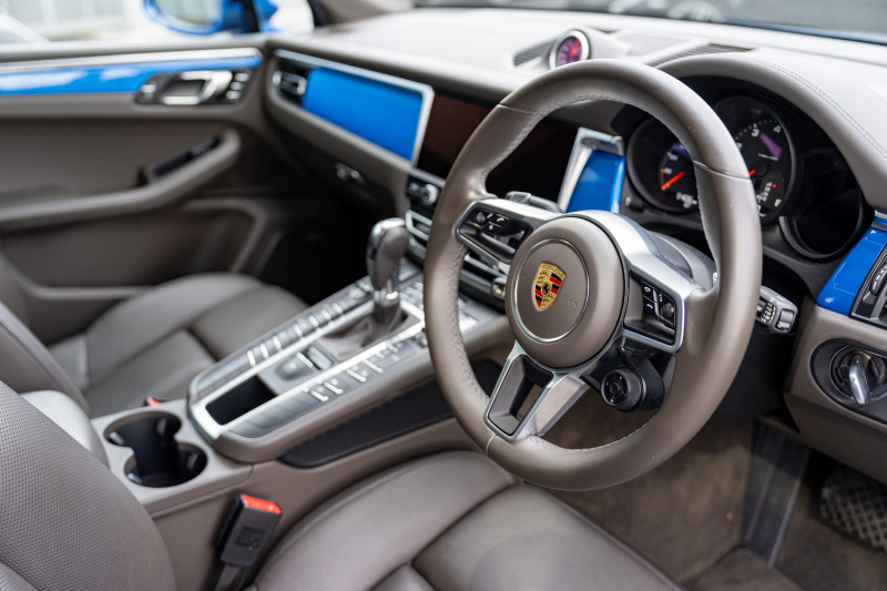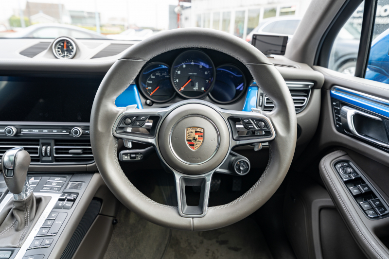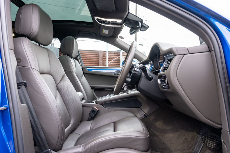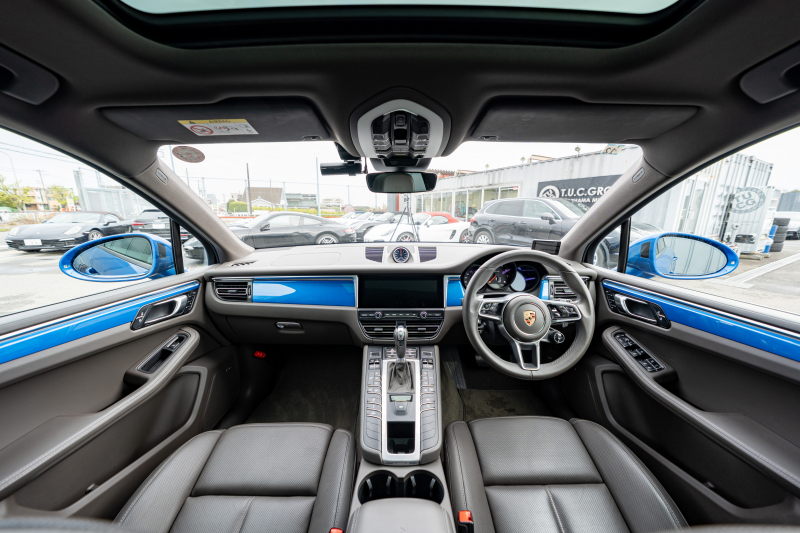 ポルシェ マカン ベースグレード スポーツクロノPKG アゲートグレーレザー ベンチレーター パノラマサンルーフ PCMナビ アラウンドビュー エントリードライブ ACC レーンチェンジ PDLS+ PASM TPM マカンターボ20インチAW 2年保証