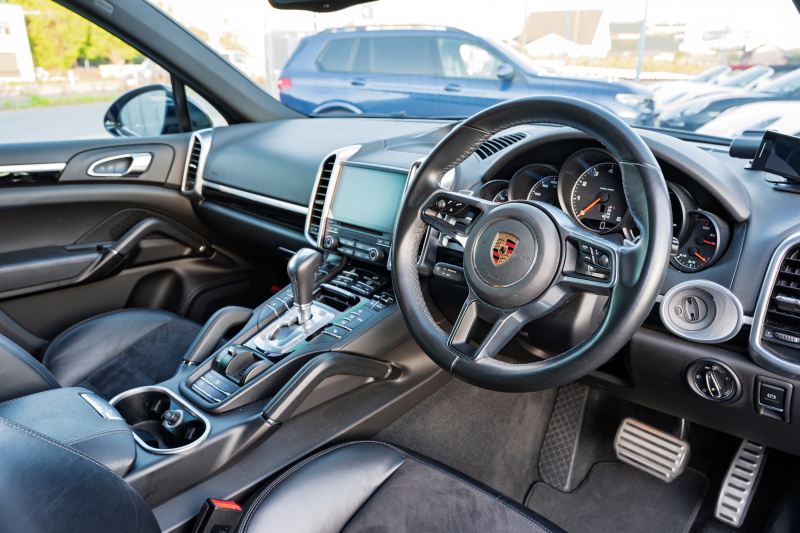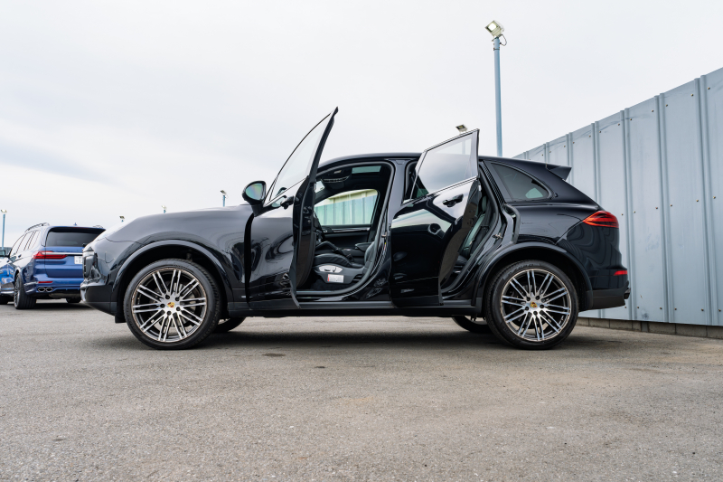 ポルシェ カイエン プラチナエディション 特別仕様車 後期モデル ブラックハーフレザーシート サンルーフ PCMナビ 地デジチューナー PDLS+/LEDライト スポーツテールパイプ 911ターボデザイン21インチAW 2年保証
