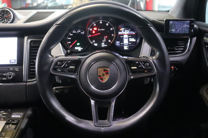 ポルシェ マカン ターボ スポーツクロノP PASM 黒本革 18Way電動シート アルカンターラルーフライナー PCMナビ CarPlay BOSEサウンド アクティブクルコン レーンチェンジアシスト スポーツプラス PDLS PLUS付きLEDヘッドライト 360カメラ スポーツエグゾースト 2年保証