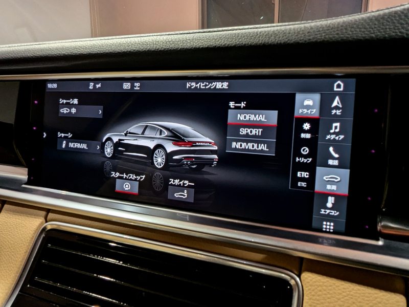 ポルシェ パナメーラ 3.0 V6 ベージュレザーシート シートヒーター エントリードライブ PASM デジタルインナーミラー ブラックペイント19インチAW スポーツデザインミラー