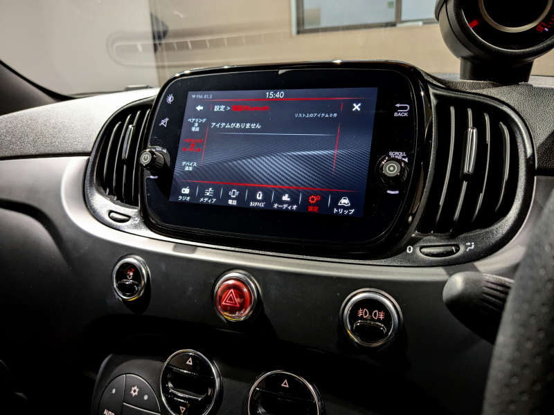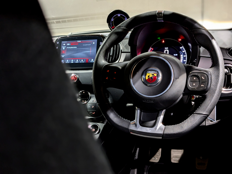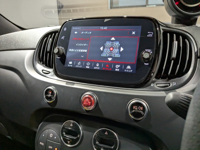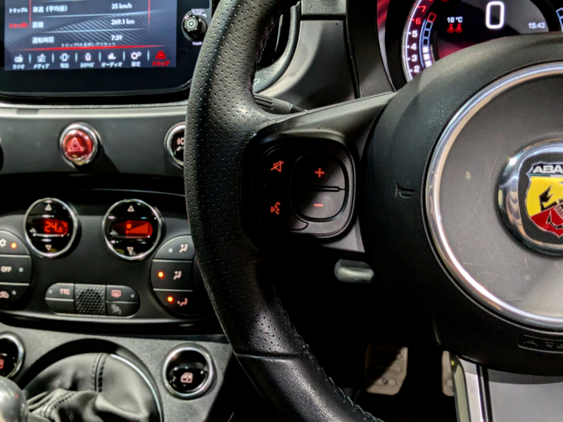 アバルト 595 F595 MT レコードモンツァマフラー ディスプレイオーディオ CarPlay対応 OP17インチアロイブラックホイール レッドキャリパー レッドサイドミラー ETC