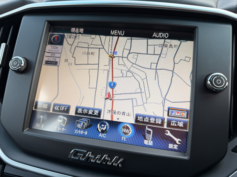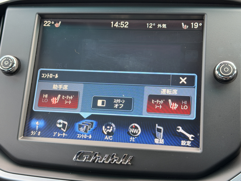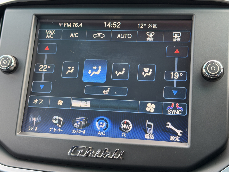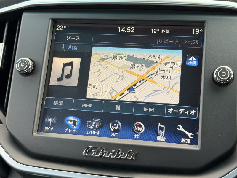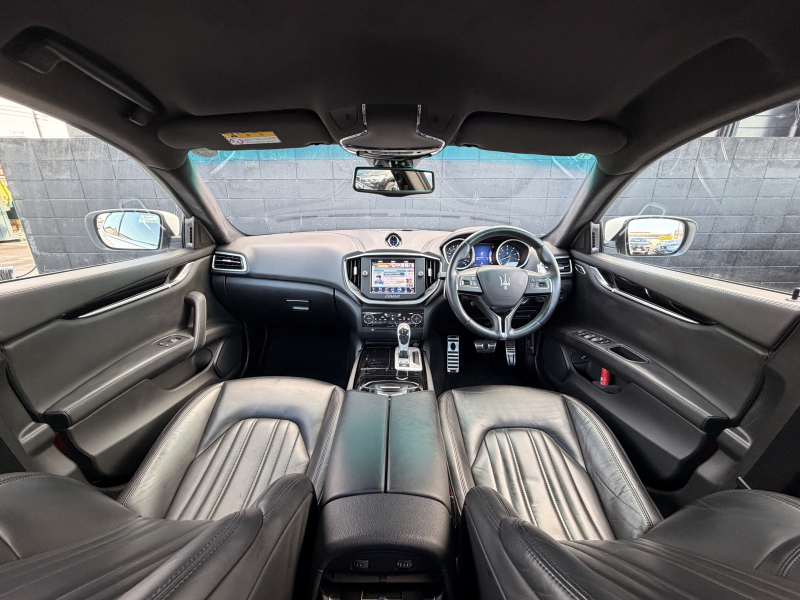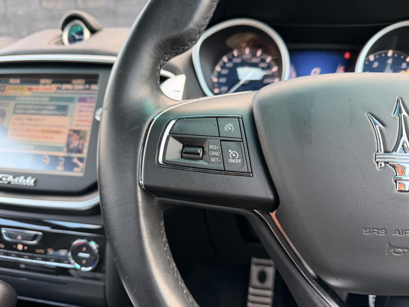 マセラティ ギブリ 3.0 禁煙車 ブラックレザー 可変バルブ付4本出しマフラー バックカメラ ヒーター付電動フロントシート 運転席側シートメモリー フルセグTV Bluetooth接続 ディスチャージオートヘッドライト 純正20インチAW クルコン