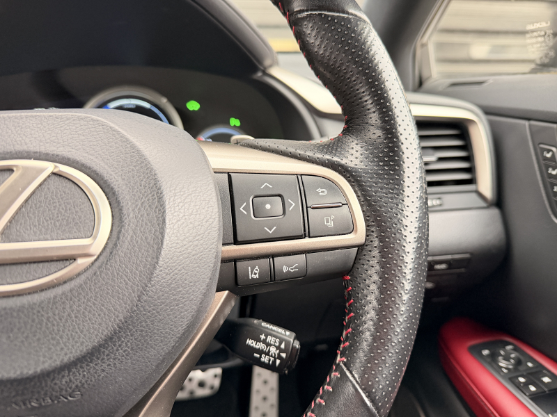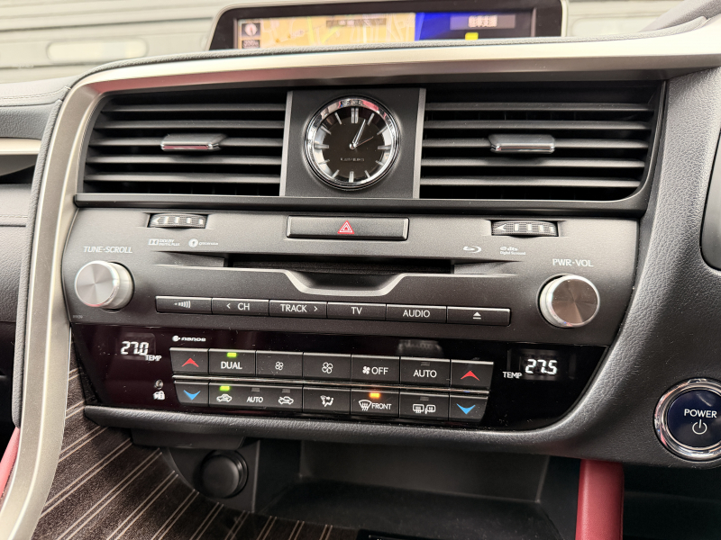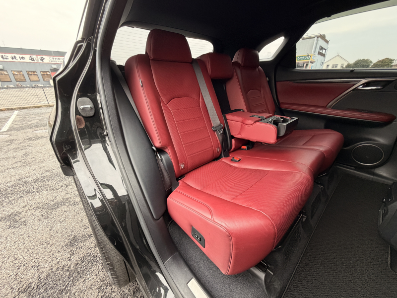 レクサス RXハイブリッド 450h Fスポーツ 1オーナー 禁煙車 赤革 HUD ヒーター&クーラー付電動フロントシート 電動セカンドシート ステアリングヒーター 360度カメラ パワーテールゲート Bluetooth接続 デジタルTV 衝突軽減ブレーキ ACC CD・DVD・Blu-ray
