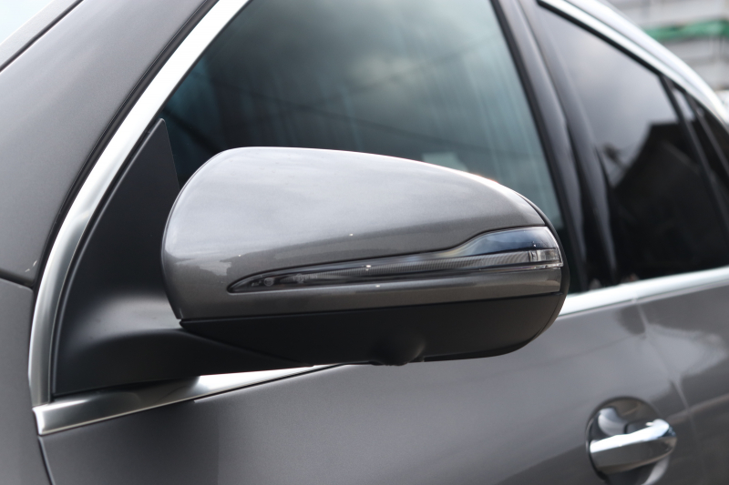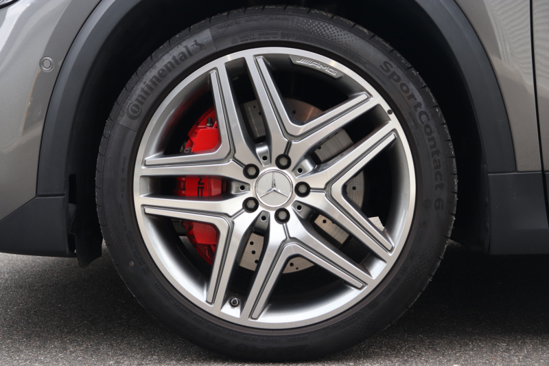 外装は落ち着いたマウンテングレー。AMGスタイリングパッケージによる精悍なフォルムに、20インチAMG 5ツインスポークアルミホイールとAMGレッドブレーキキャリパーが映える、上品かつ力強い組み合わせです。光の角度でわずかに経年の痕が見える程度で、全体としてコンディションの良さが伝わります。
