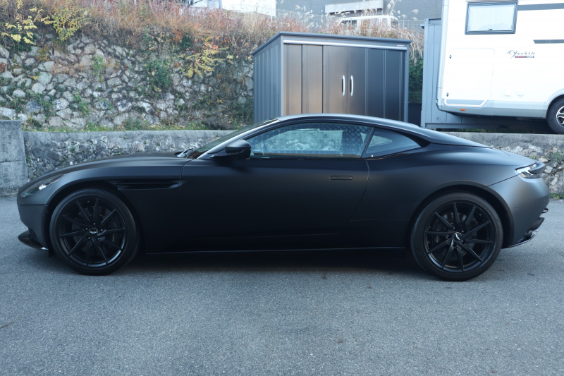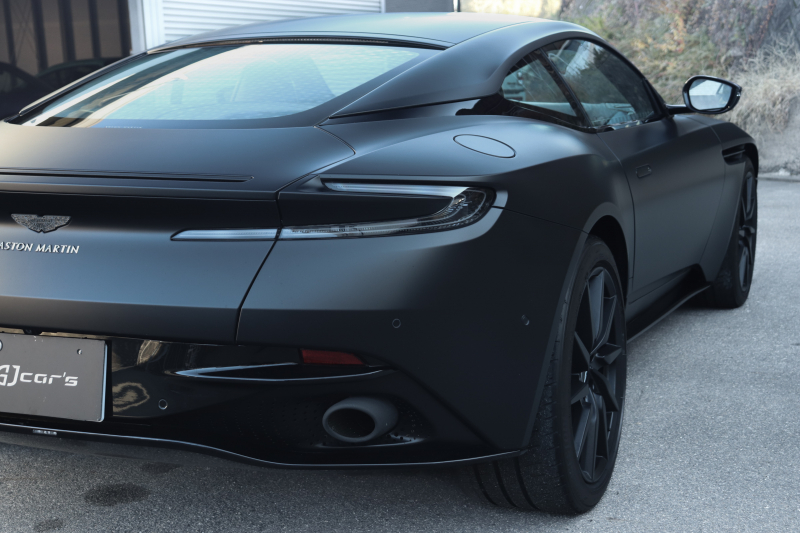 外装色は特別塗装色のサテンジェットブラック。艶を抑えたマットブラックが、DB11の流麗なボディラインをより明確に浮かび上がらせ、光の当たり方によって表情を変えます。