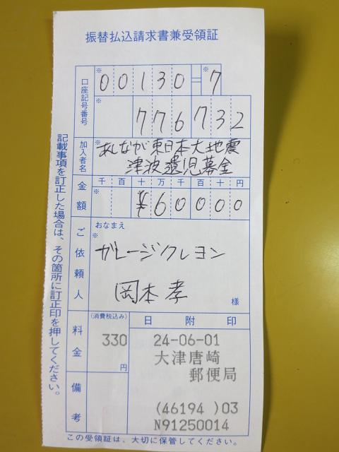 合計3台の60,000円を義援金として先程振り込んできました。