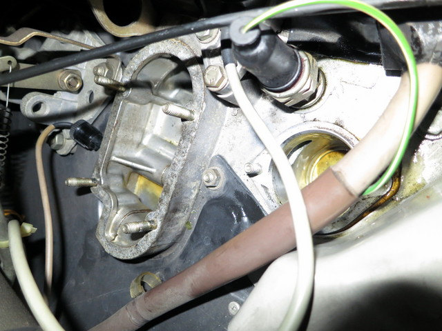 まずはインテークマニホールド奥側にあるブローバイ部とオイルサーモ部分を作業していきます。。今回、オイル漏れは全く見受けられない状態でしたが経年劣化によりオイル漏れを起こしやすい部分になりますので事前に交換します。